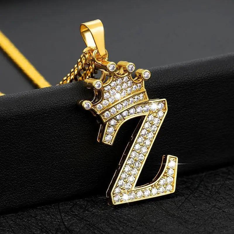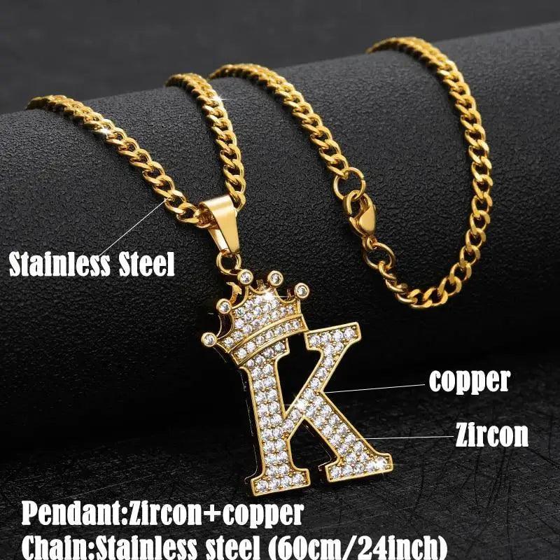 • STYLE -Classic pave diamond abc to z 26 pcs letters Initial pendant with crown in gold tone.hip hop jewelry style personalized necklace is a perfect gifts, for men women teens/boys and girls.Nice Show of Your Best Wish!