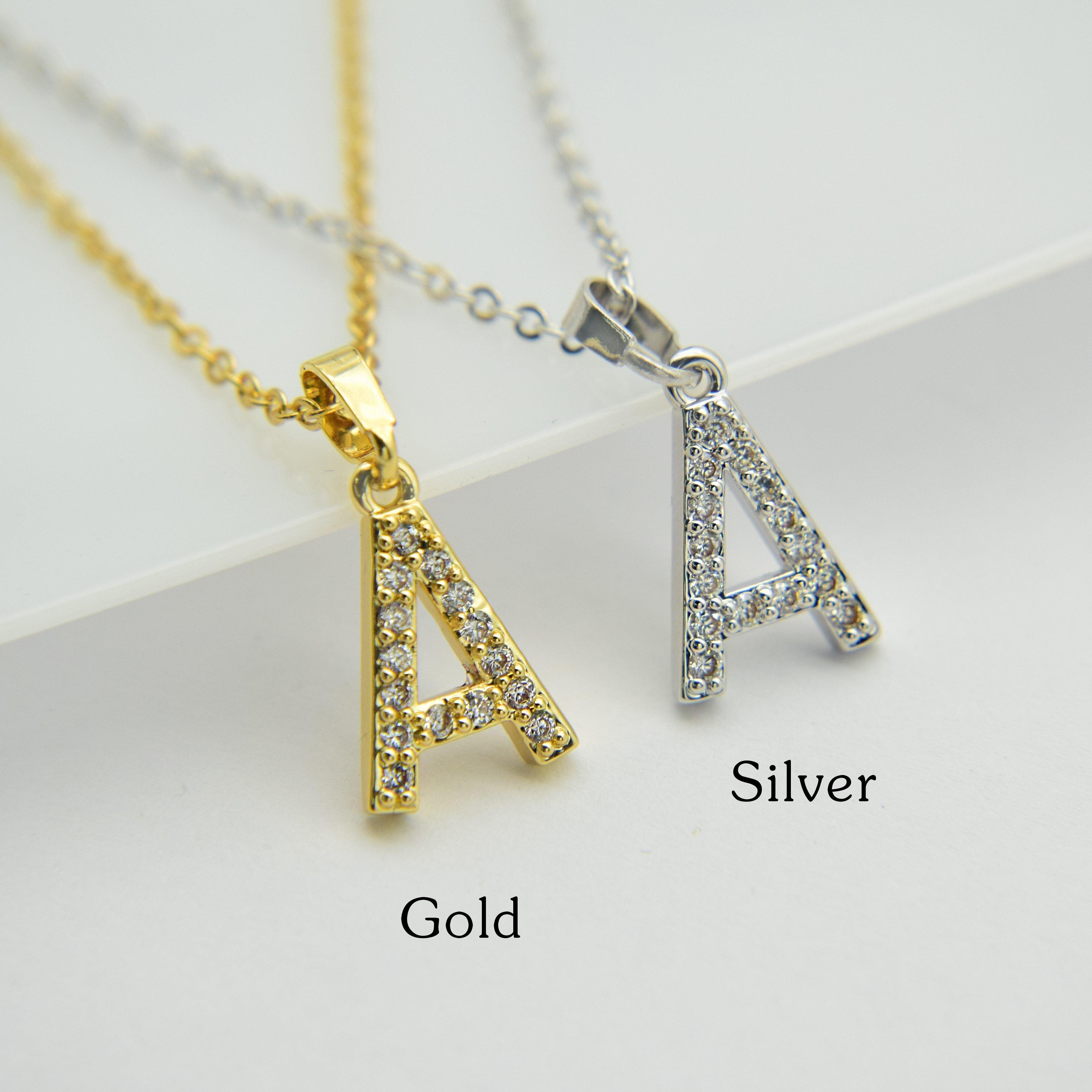 Cubic Zircon Alphabet Gold Silver Color Copper Mini A-Z Letter Pendant Necklace Shinning 26 Initial Collares Jewelry