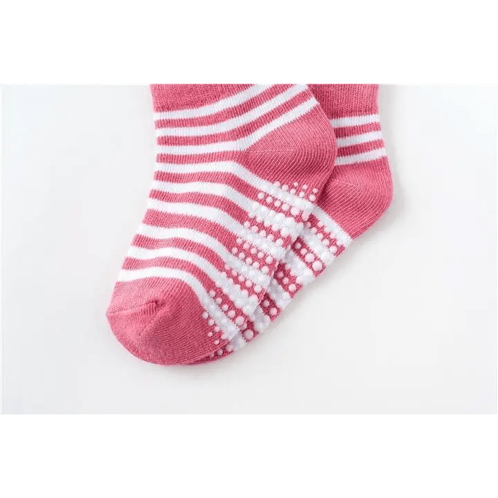 • COMFORTABLE TO WEAR- The pull tabs behind the ankle helps the mom to put on and take off the socks very easily, the elastic ribbed cuffs prevent the socks from falling off, the non-slip grippers on the base offers good protection at stopping slips for your baby