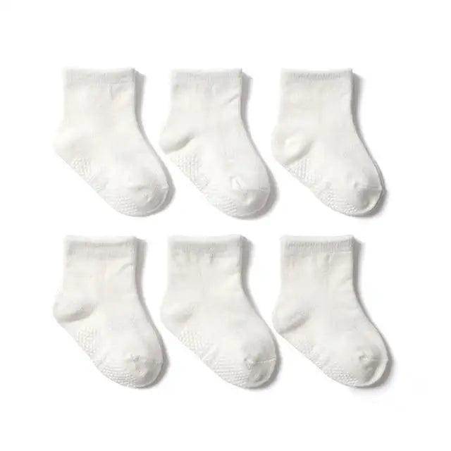• PACKAGE INCLUDES- Package includes 6 pairs of anti-slip baby socks to easily match with multiple outfits. They comes in size 0-6 months. Perfect for active infants