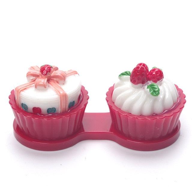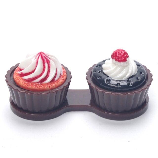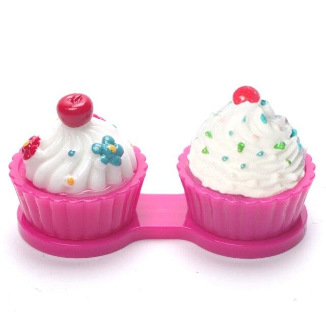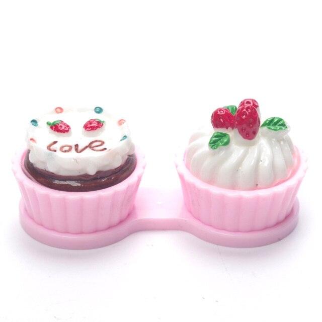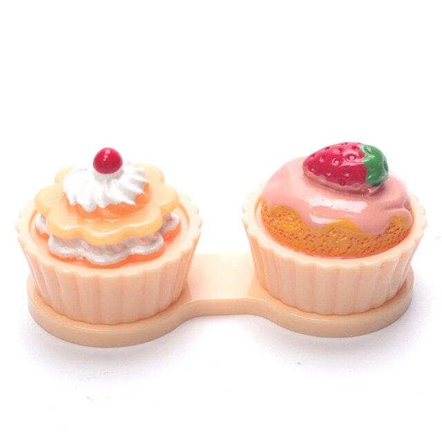 Beautiful Cream Cake Glasses Double Contact Lenses Contact Lens Case For Eyes Care Kit Holder Container Colorful Contact Lens Case Contact Lens Immersion Kit Leak-Proof Suitable For Outdoor