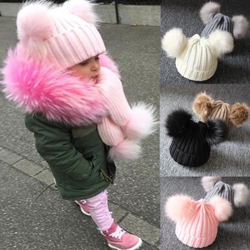 Trend Cute Newborn Baby Winter Warm Hats Infant Kids Girls Boys Knit Hat With Pompom Ball Beanie Caps For Girls