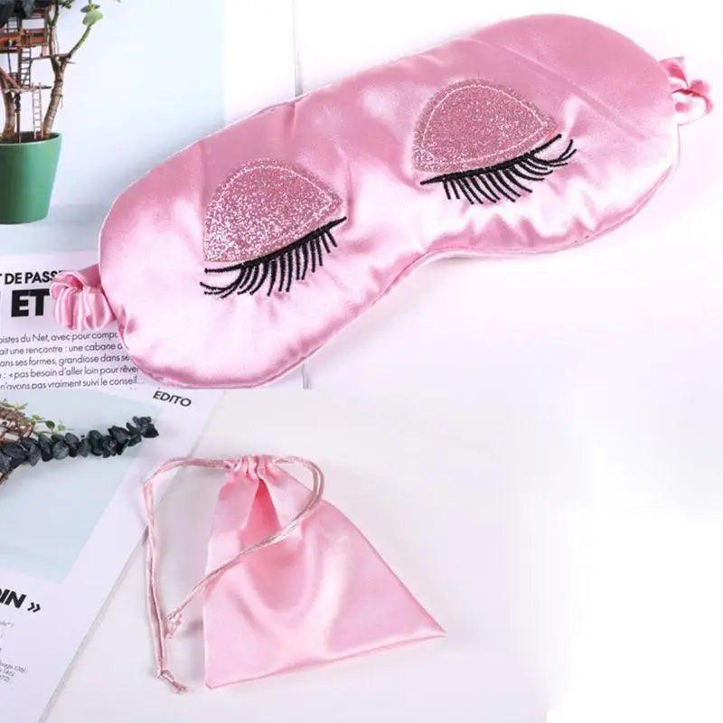 Comfortable Pink Silk Elegant Sleeping Mask Long Eyelash Sleeping Eye Mask Soft Sleeping Mask With Elastic Strap Breathable Lightweight Blindfold For Women Eye Cover Eyeshade With Luxury Bag
