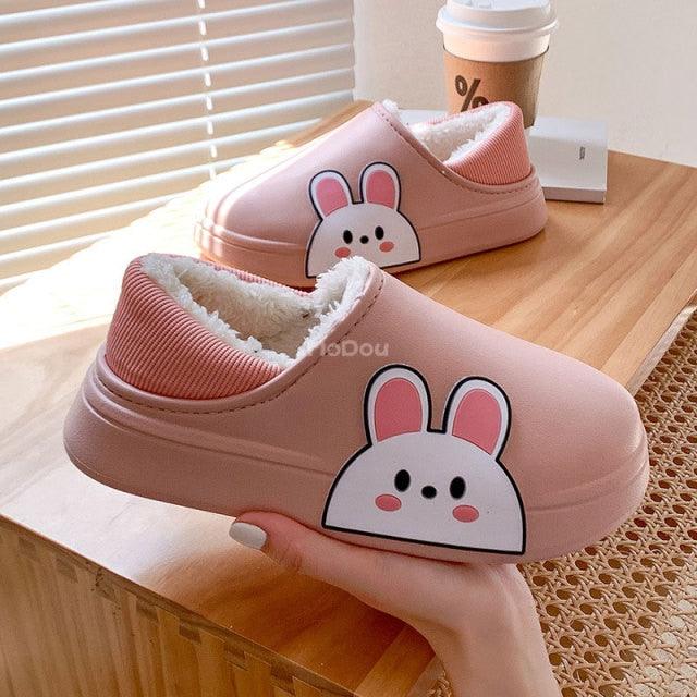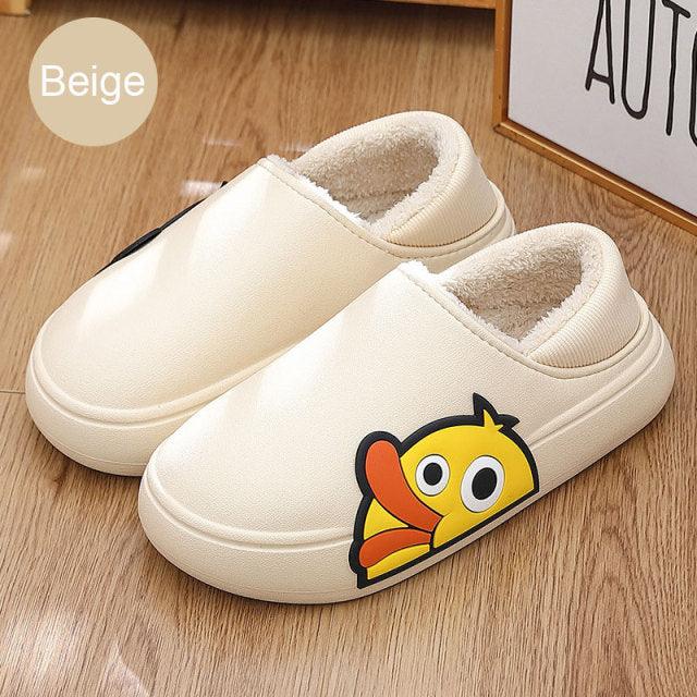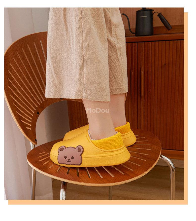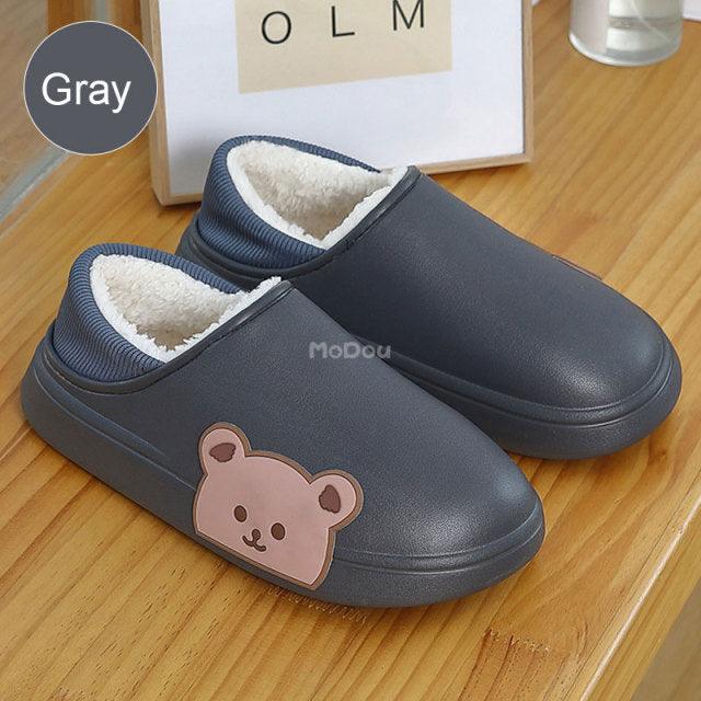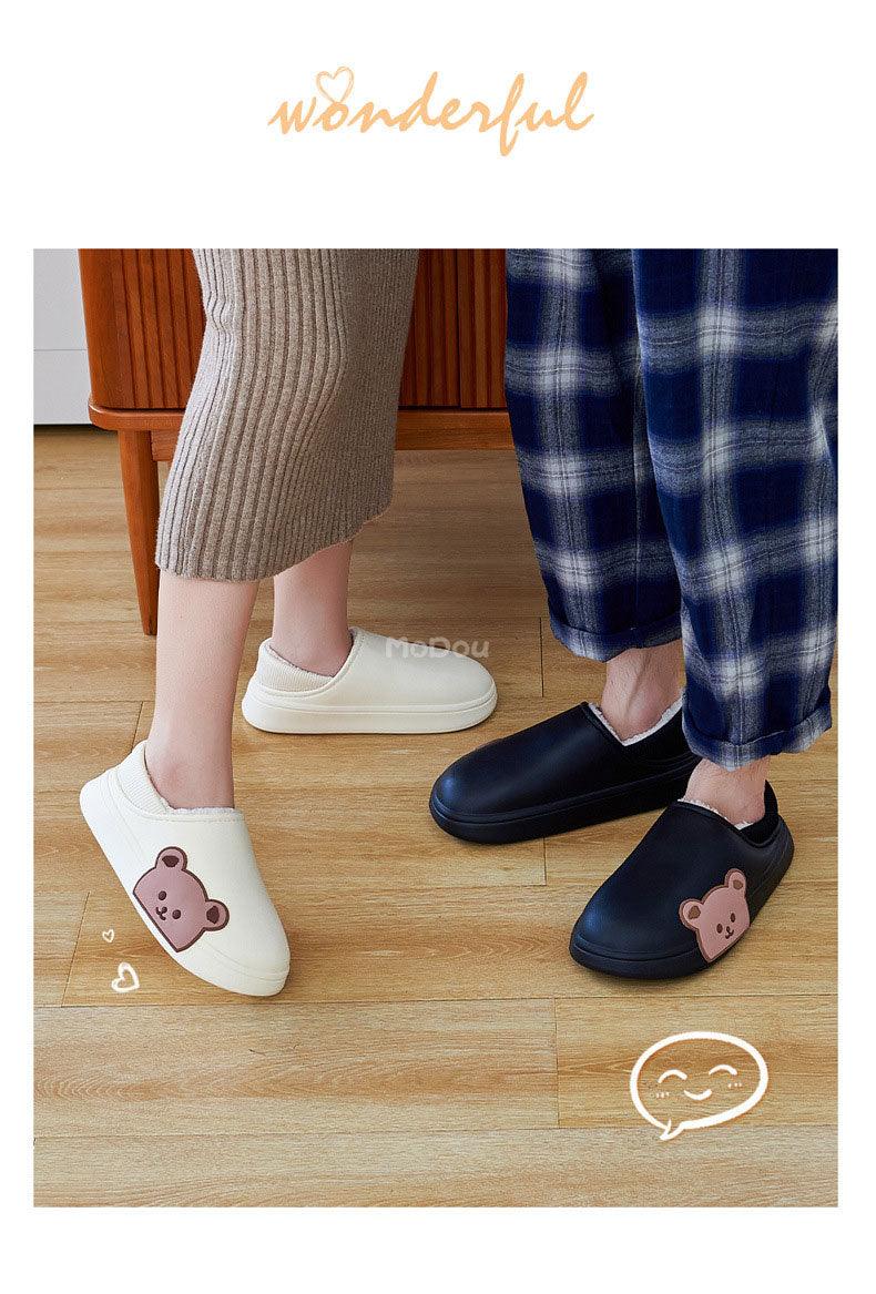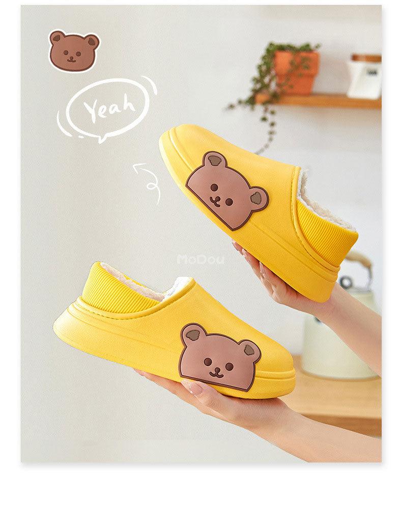 Cute Side Bear Waterproof Cotton Women Shoes Winter Warm Indoor Outdoor Wrapped Heel Slippers EVA Comfort Memory Foam Slippers Waterproof Non Skid Warm Washable Cotton Shoes Loafer Slippers
