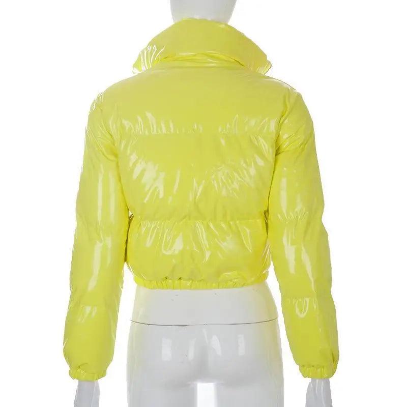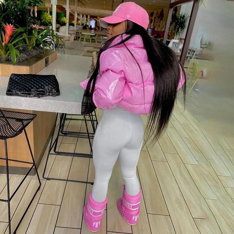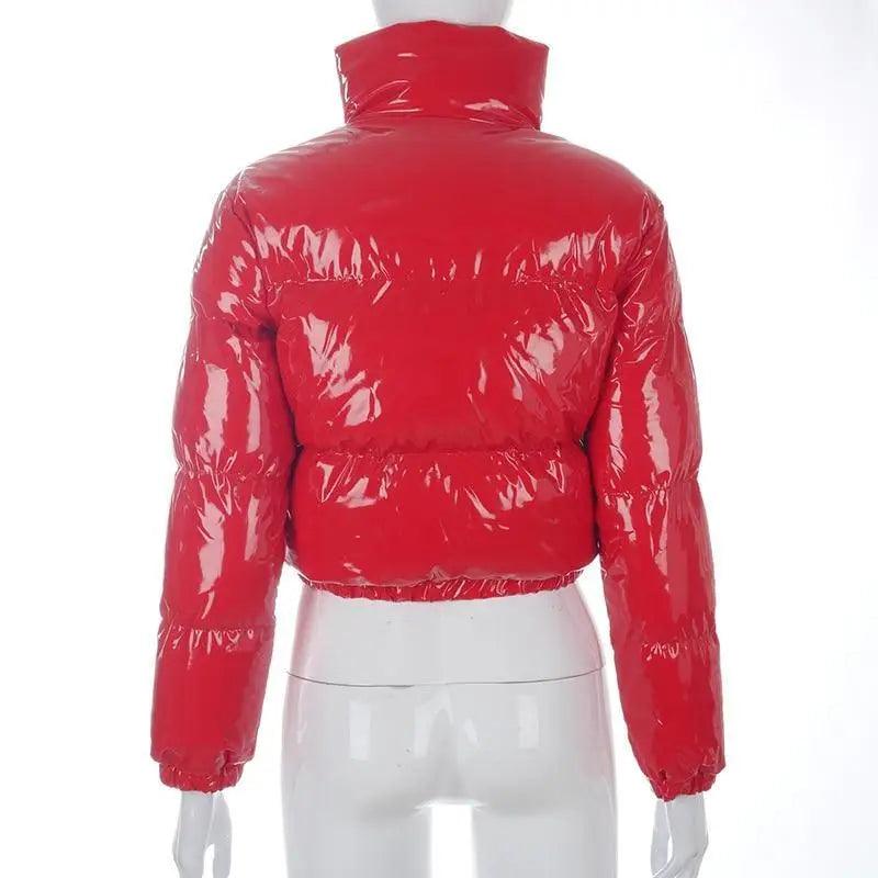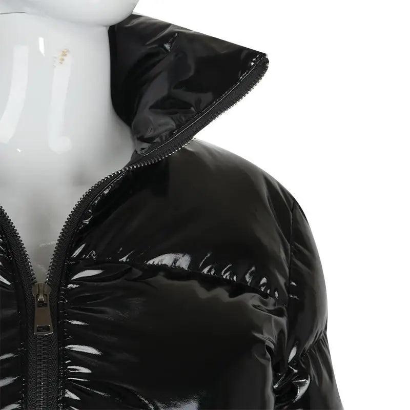 Durable Faux PU Leather Bubble Puffer Winter Warm Jacket Women Coats Long Sleeve Outerwear Zipper Casual Slim jacket