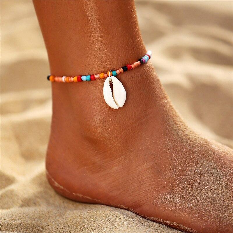 Handmade Fashion Colorful Seed Beads Shell Ankle Bracelet for Women Foot Leg Jewelry Brecelets