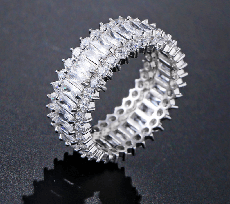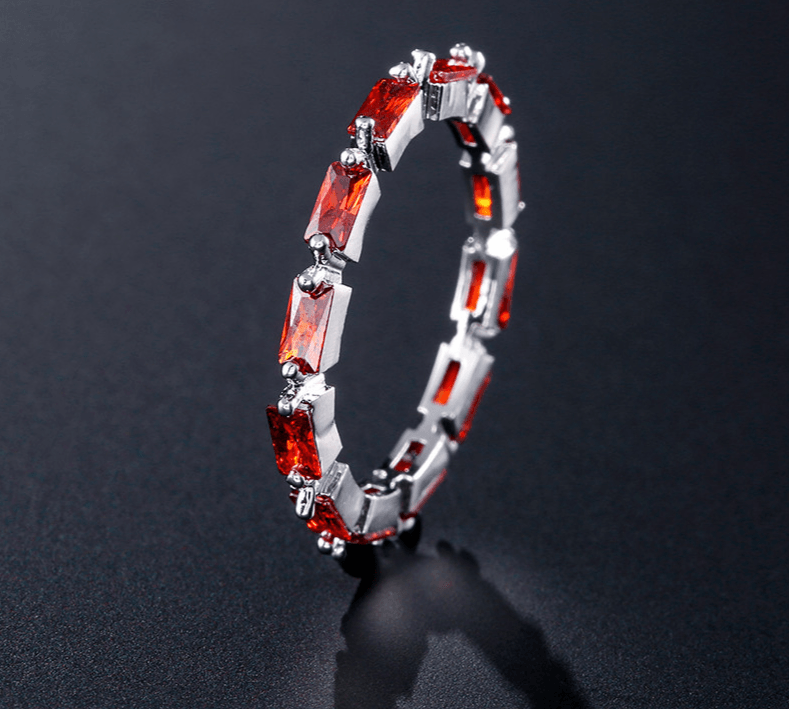 • RING - Royal Blue Classic Elegant Stackable 4 Prong Set Faceted Baguette Emerald Cut CZ Eternity Band Ring For September Birthdays