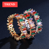 Fashion Luxury Multicolor Charm AAA Baguette Cubic Zirconia Wedding Rings for Women T Shape Stone Party Jewelry