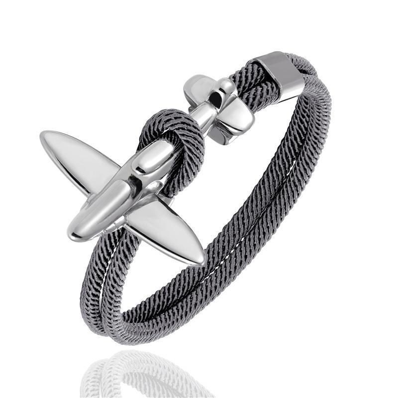Elegant Fashion Modern Stainless Steel Airplane Glider Luxury Anchor Rope Leather Flight Bracelets For Men And Women New Aviator Style