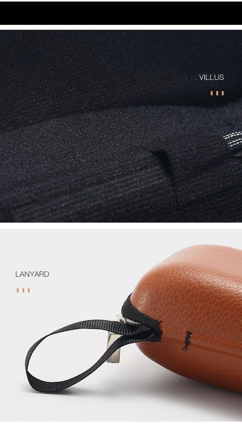 • MATERIAL: Made of premium leather exterior and soft interior, this glasses pouch features ultra light weight and portability, which protect your eyeglasses/sunglasses from damage.