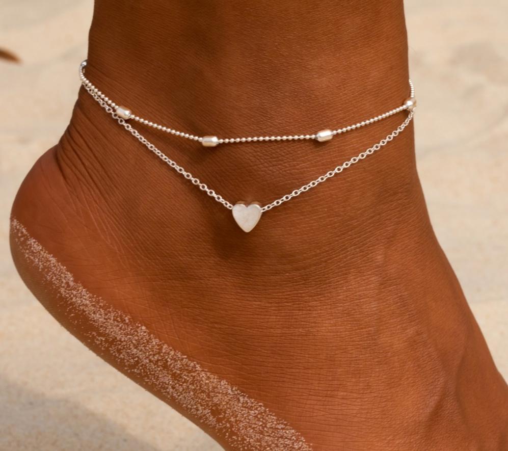 • ANKLE BRACELETS FOR WOMAN: silver beads heart anklet for teen girls in the summer beach. cute anklet, dainty anklet, heart anklet, layered anklet