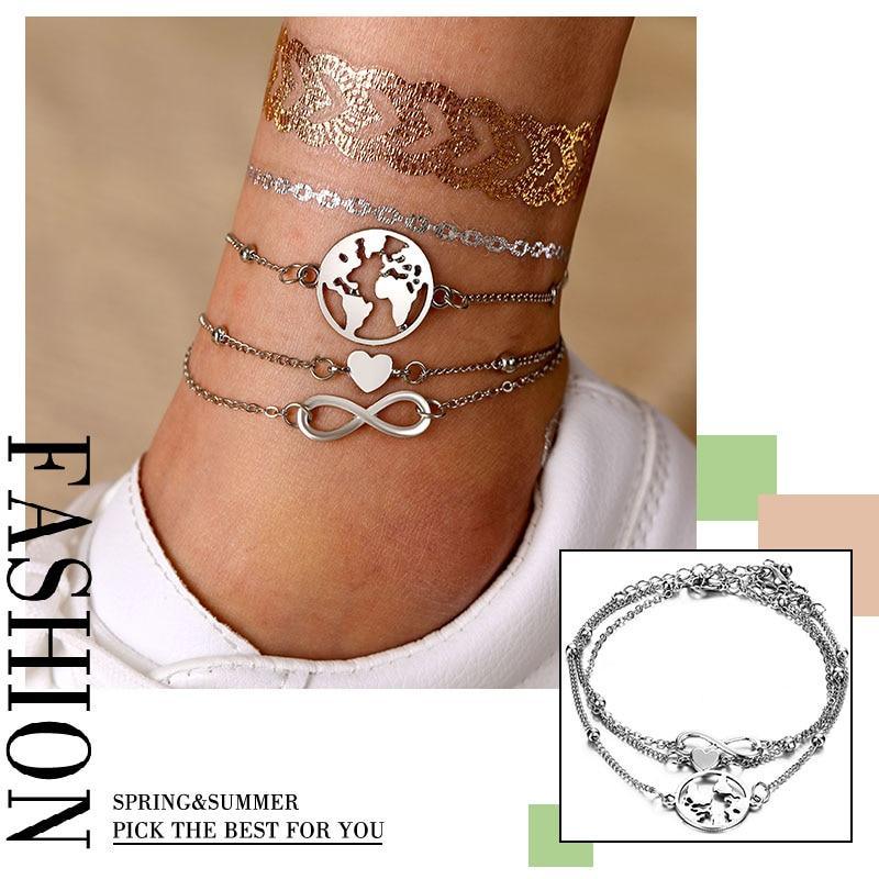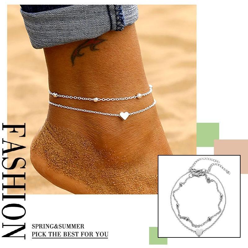 Female Heart Anklets Barefoot Crochet Sandals Foot Jewelry Bracelets For Women Leg Chain