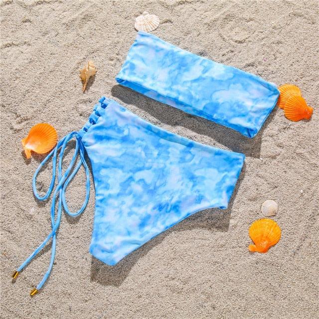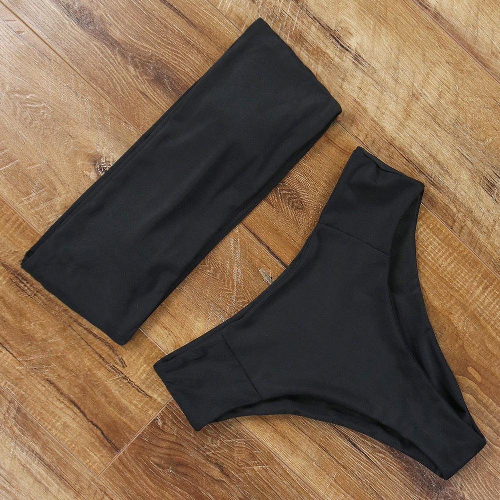 • STRAPLESS BIKINI- Solid bikini swimsuit sets, feature a tube top with lace up design at the back and high cut triangle bottom. Self-tie design, easy to adjust the size on the back.