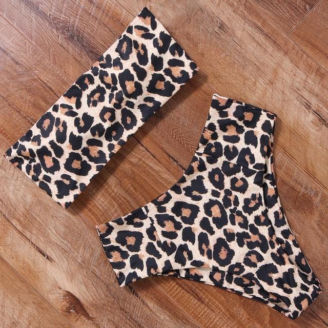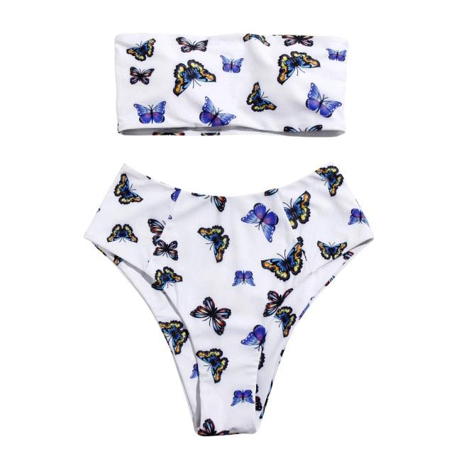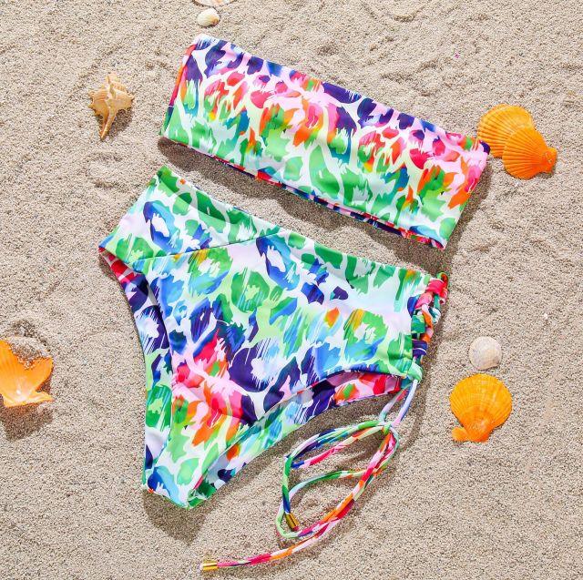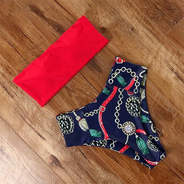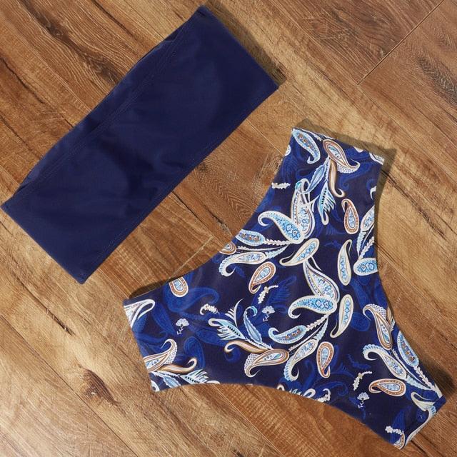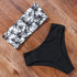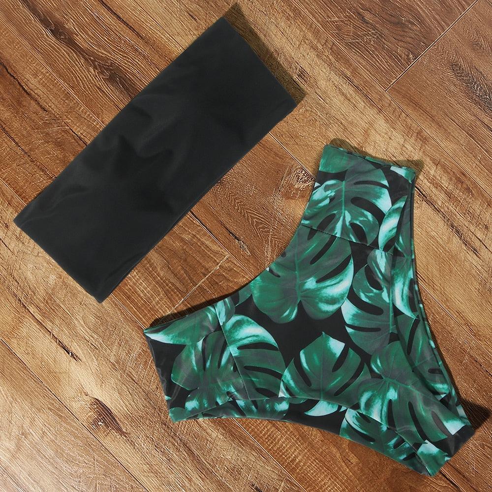 Floral Bikini Set Swimsuit High Waist Bathing Suit Black Swimwear Women Push-Up Leaf Women's Strapless High Waist Bikini Swimsuits Lace Up 2 Pieces Bathing Suit Swimwear