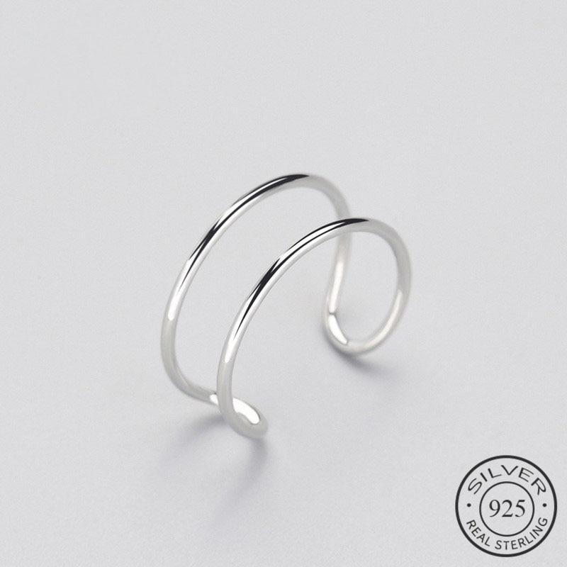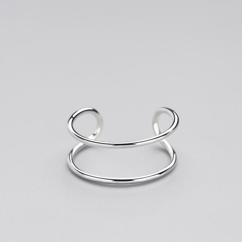 Geometric Double line Adjustable Ring Genuine 925 Sterling Silver Trendy Fine Jewelry For Charm Women