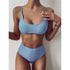 Glitter Sparkling Female Swimsuit High Waist Bikini Women's High Waist Bikinis Party Glitter Scoop Neck Crop Top Swimsuits Two Piece Bathing Suit Women Swimwear Two-pieces Bikini Set Summer Swim Suit