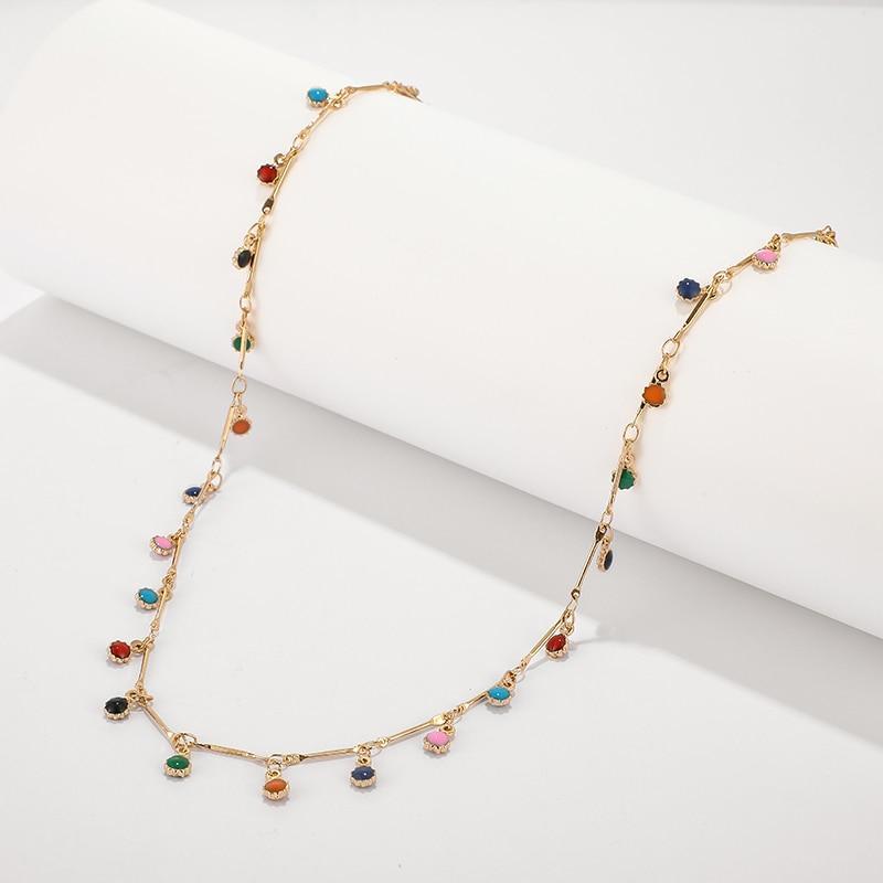 Vintage Reto Tribal Women Gold Shiny Colorful Necklace for Women With Charming Colorful Stone Chain