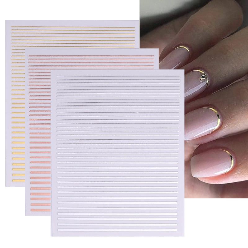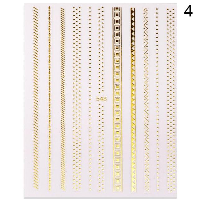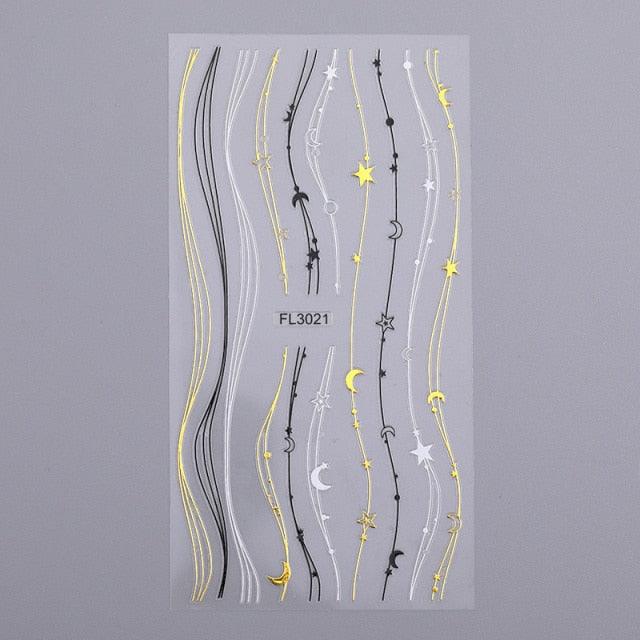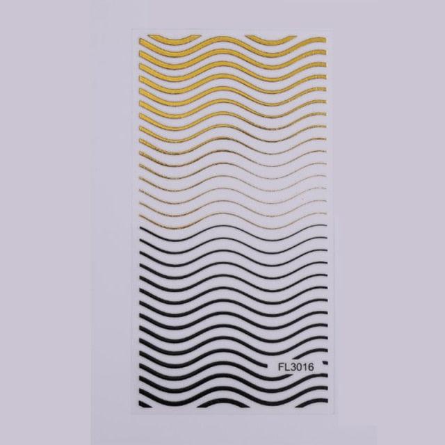 Gold Silver 3D Nail Sticker Curve Stripe Lines Nails Stickers Gradient Adhesive Striping Tape Nail Art Stickers Decal Decoration Metallic Curve Strip Line Nail Decal Self-Adhesive 3D Wave Design Decoration for Women Girls
