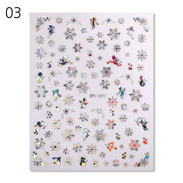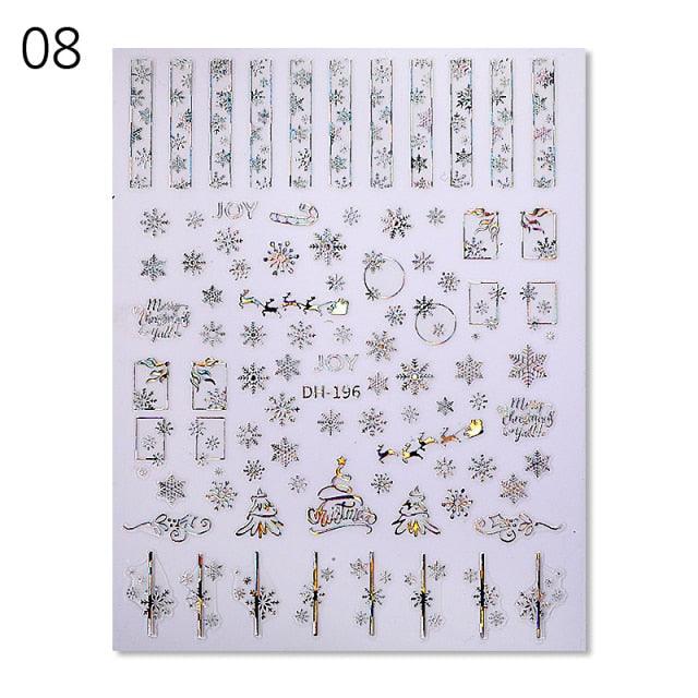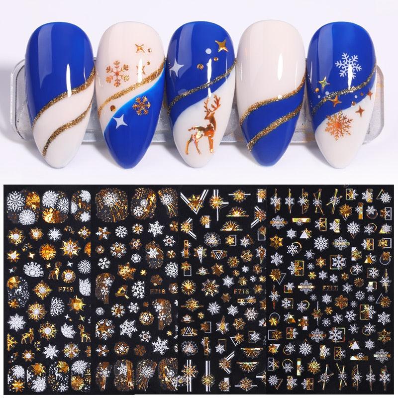 Gold Silver White Snowflakes 3D Nail Stickers Iridescent Self Adhesive Transfer Decals Manicures Art Decoration Slider Nails Decals Sticker Hot Sexy Girl Tip Back Glue Decal Cool Lollipop Self Adhesive Acrylic Tips Tool Decoration