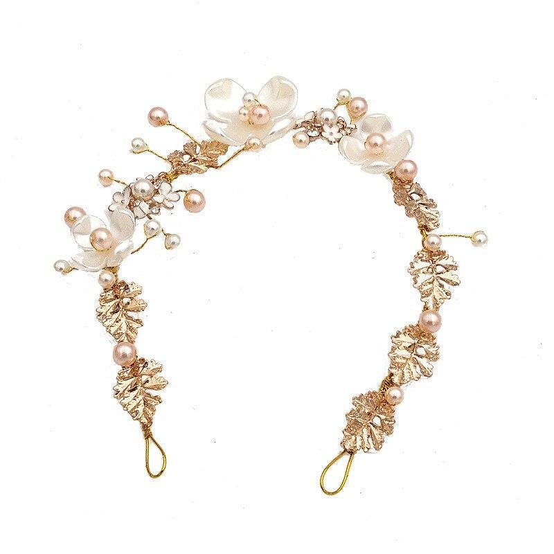 • FLOWER WREATH MATERIAL : Gold brass wire, Alloy, rhinestone, crystal, pearl. It is blendable so you can adjust it for any hair style design.