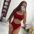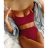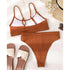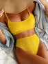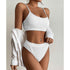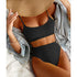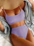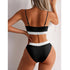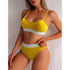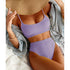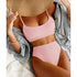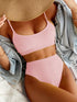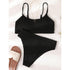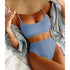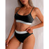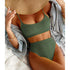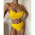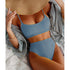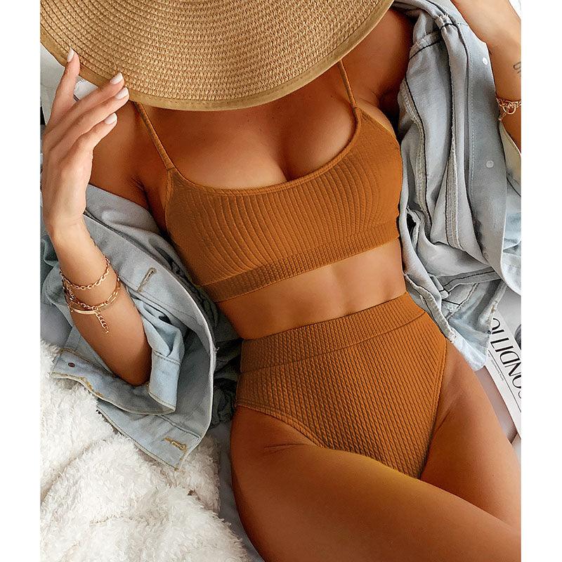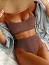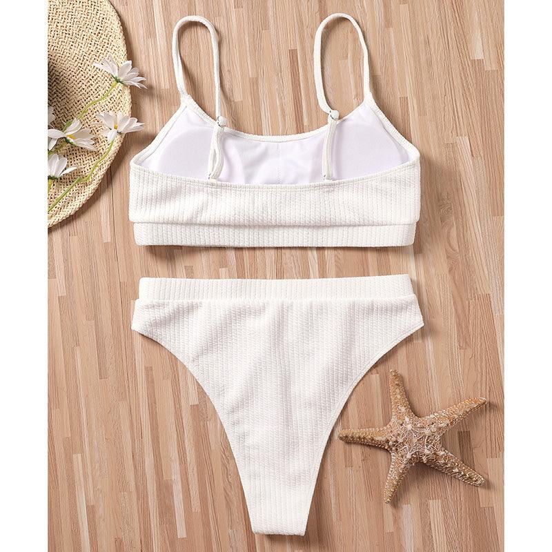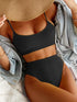 High Waist Bikinis Swimwear Women Push Up Swimsuits Solid High Waist Bikini Sets Sporty Two Pieces Swimsuit Scoop Neck Bathing Suits for Women Ribbed Bathing Suits High Cut Summer Beachwear