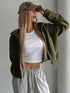 Stylish Zip-Up Long Sleeve Cropped Jacket Trendy & Lightweight Outerwear for a Chic Look