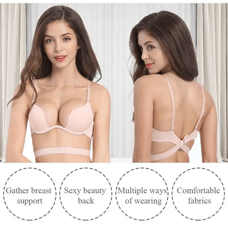 New Women Lingerie U Backless Bras Underwear Deep U Low Cut Push Up Bra Female Breathable Bra