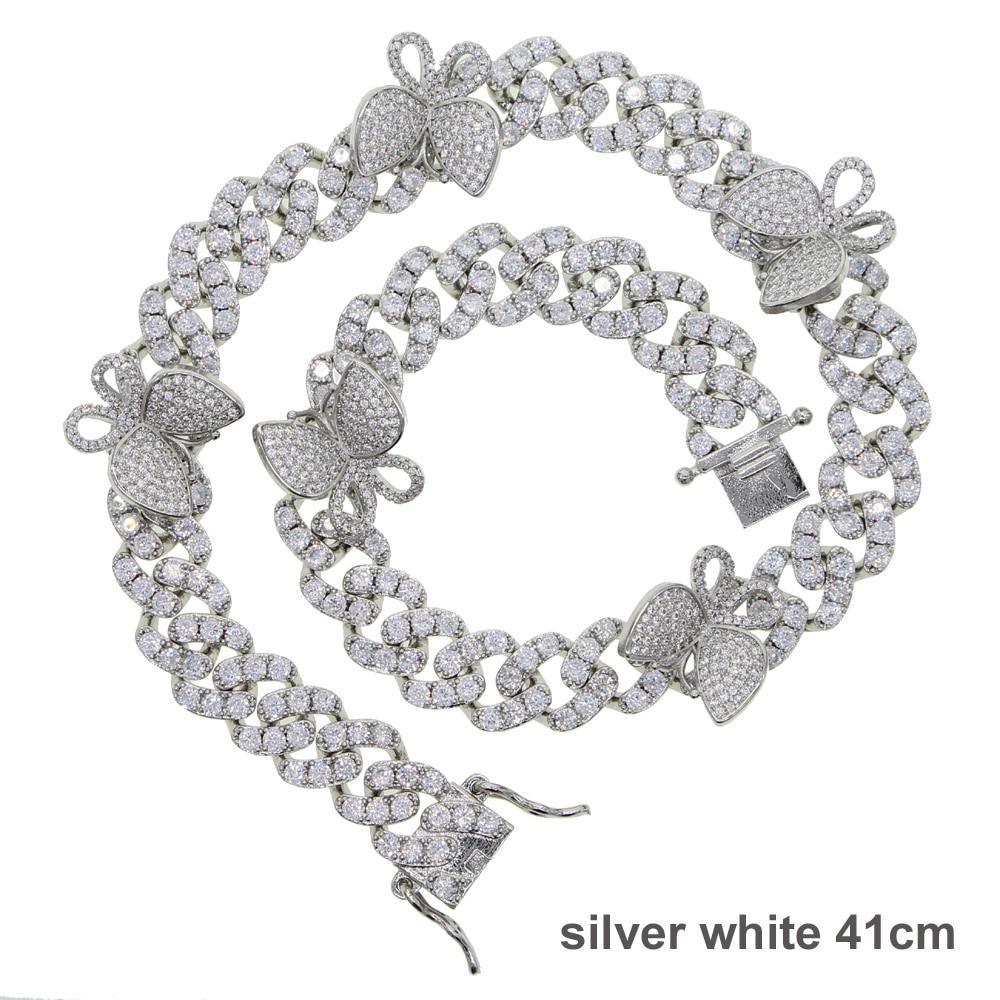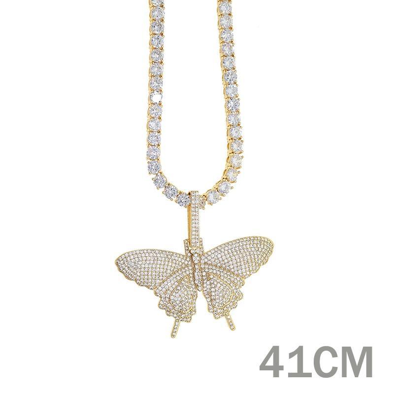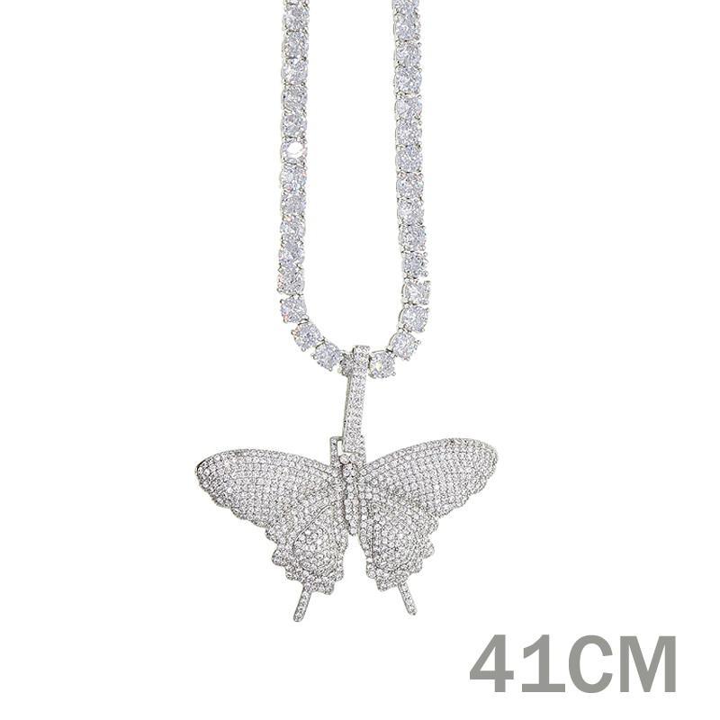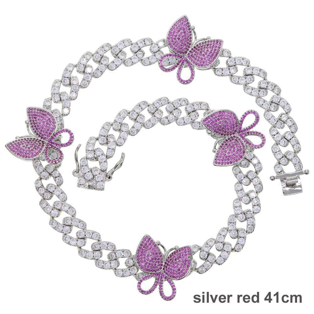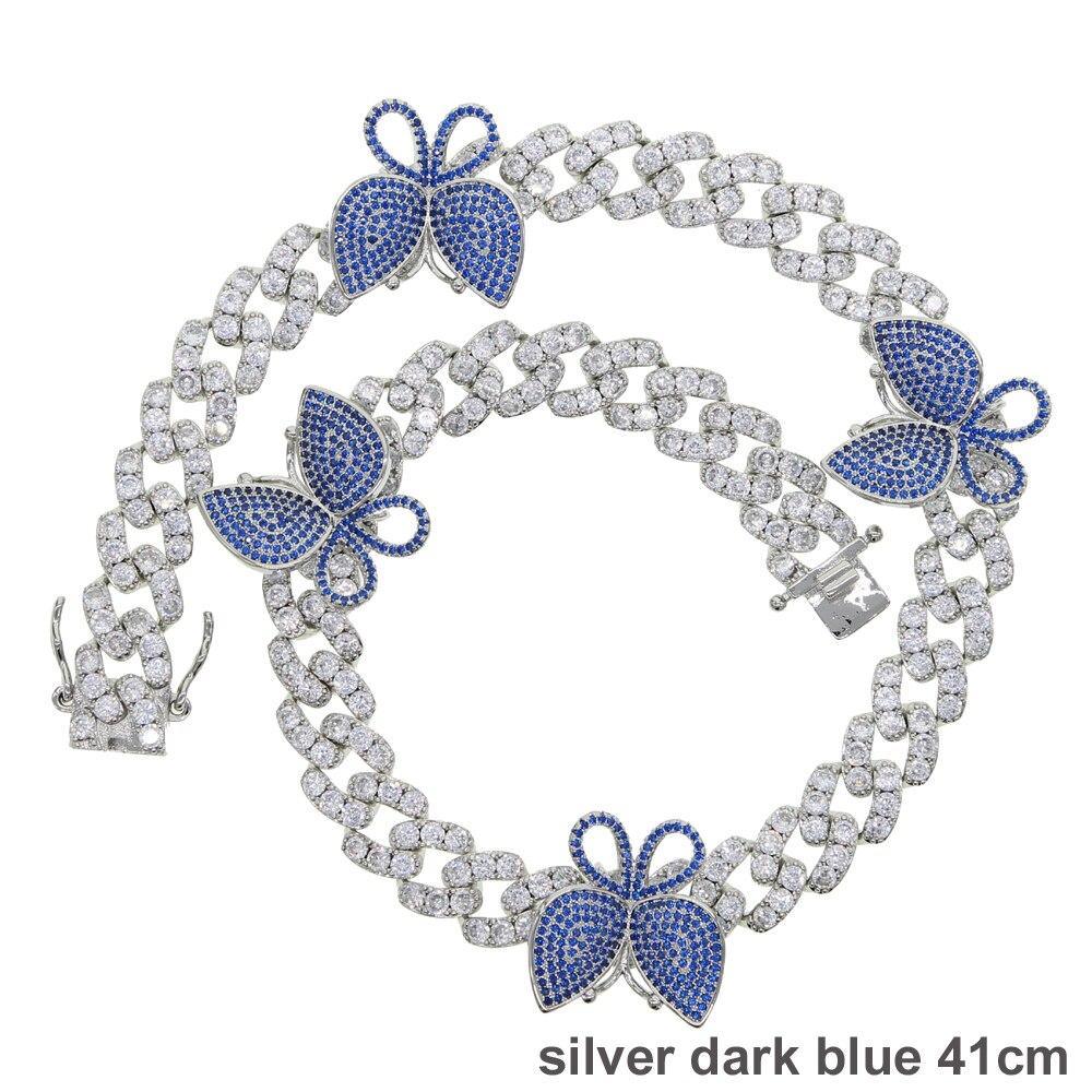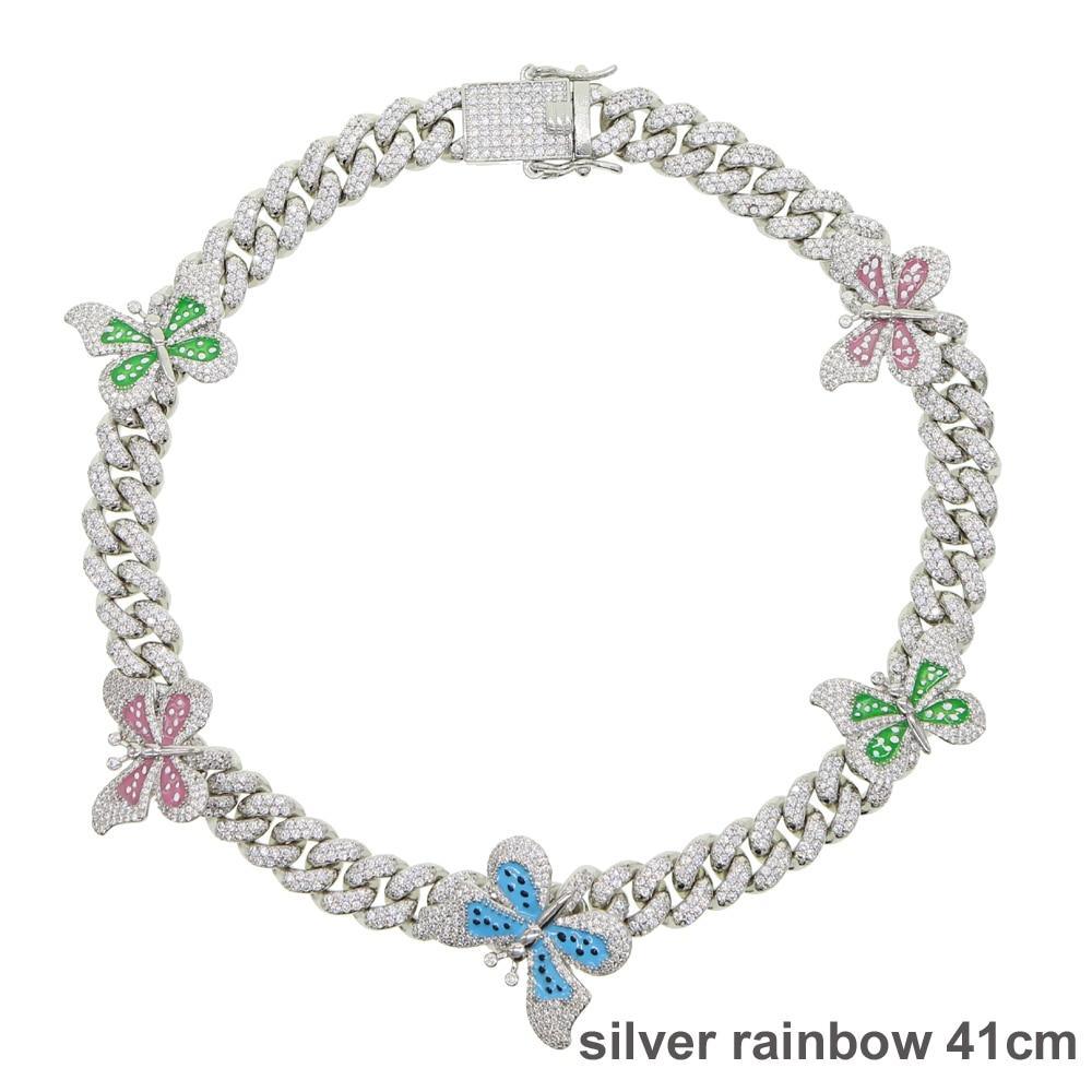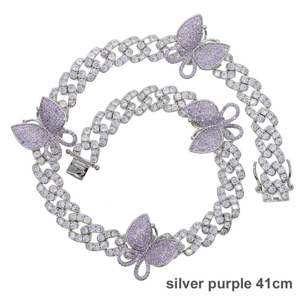 Luxury Elegant Miami Cuban Link Chain Butterfly Charm Choker Necklace Bling In Hip Hop Jewelry Style For Men and Women
