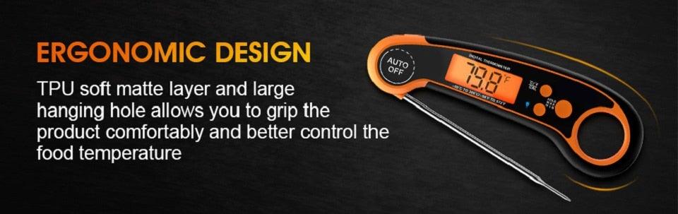 • REVERSIBLE DISPLAY- You can get the large, easy-to-read bright backlight screen to offers you a spectacular clarity when reading the temperature in the dark or in the middle of smoke by Short pressing the temperature unit switch to turn on the light! And the reversible display rotates automatically depending on how the food thermometer for cooking is held and enables you to read the numbers from any direction which is very easy for right or left-hand persons to use.