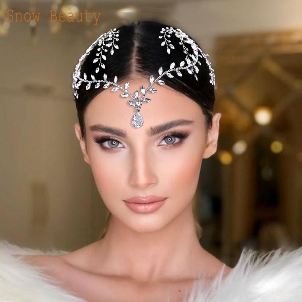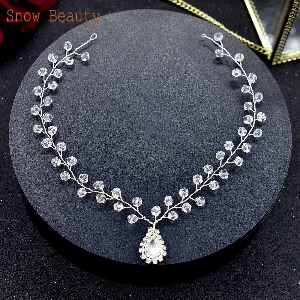 Bridal Headband Water Drop Headwear Wedding Hair Accessories Rhinestone Forehead Headpieces For Woman Pageant Crown Wedding Bridal Crystal Headband For Woman Rhinestone Hair Comb Wedding Headdress Wedding Headpiece