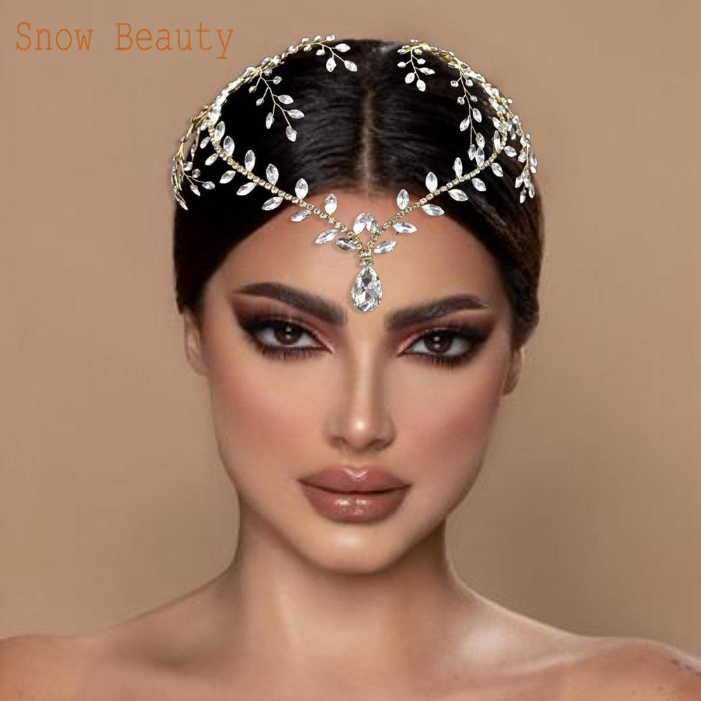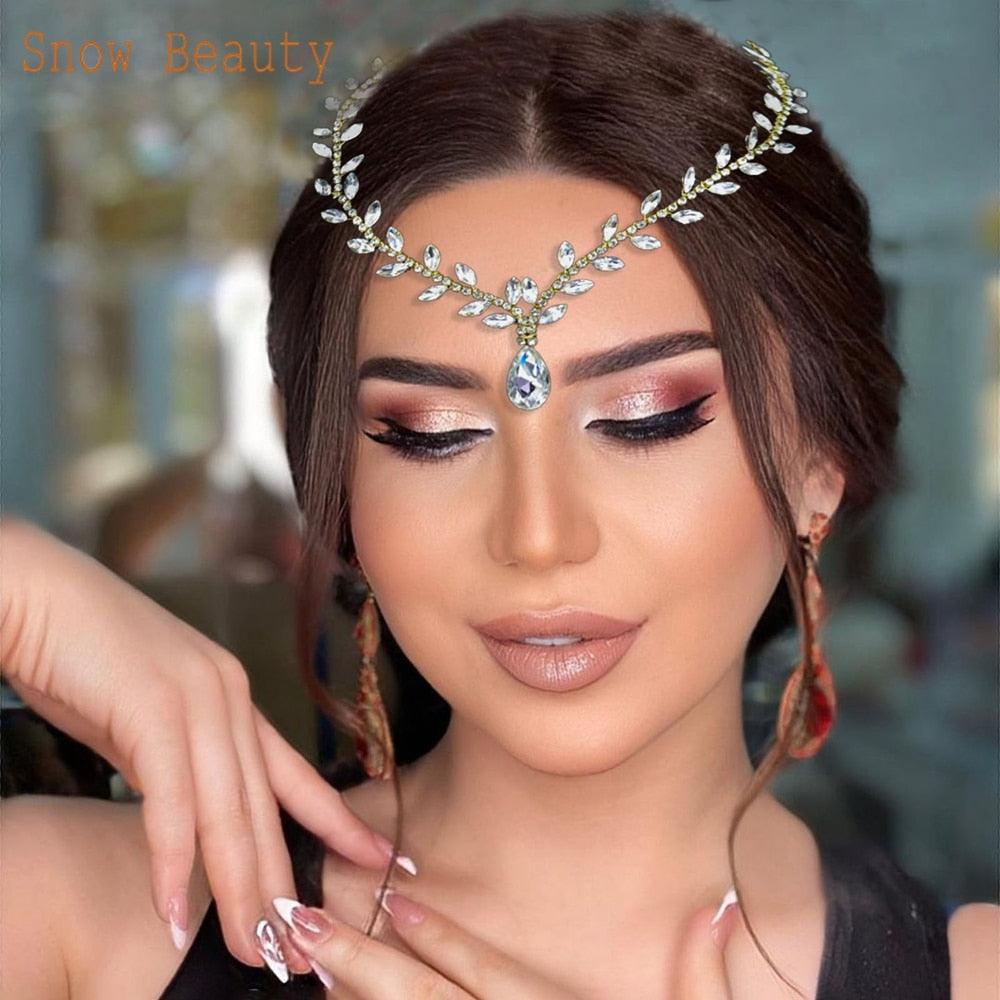 • UNIQUE DESIGN- The hair adopts a symmetrical design, which is delicate and elegant.The alloy wire is soft and the hairpiece can be adjusted according to your own head shape There is a super shiny pendant between the eyebrows, which can make you dazzling in the wedding.