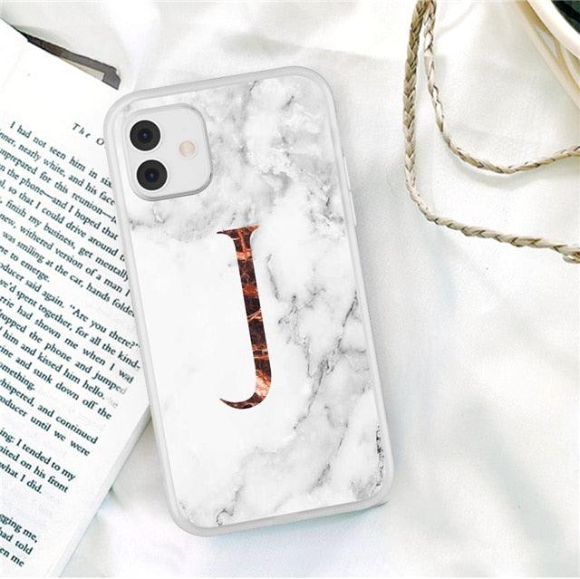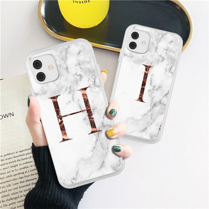 Modern White Initial Letter Fashion Phone Case For iPhone 13 Pro Max 11 Pro Max 12 Pro Max 12 Mini 13Mini Luxury Marble Texture Camera Protection Shockproof Soft Elegant Bumper Silicone Cover