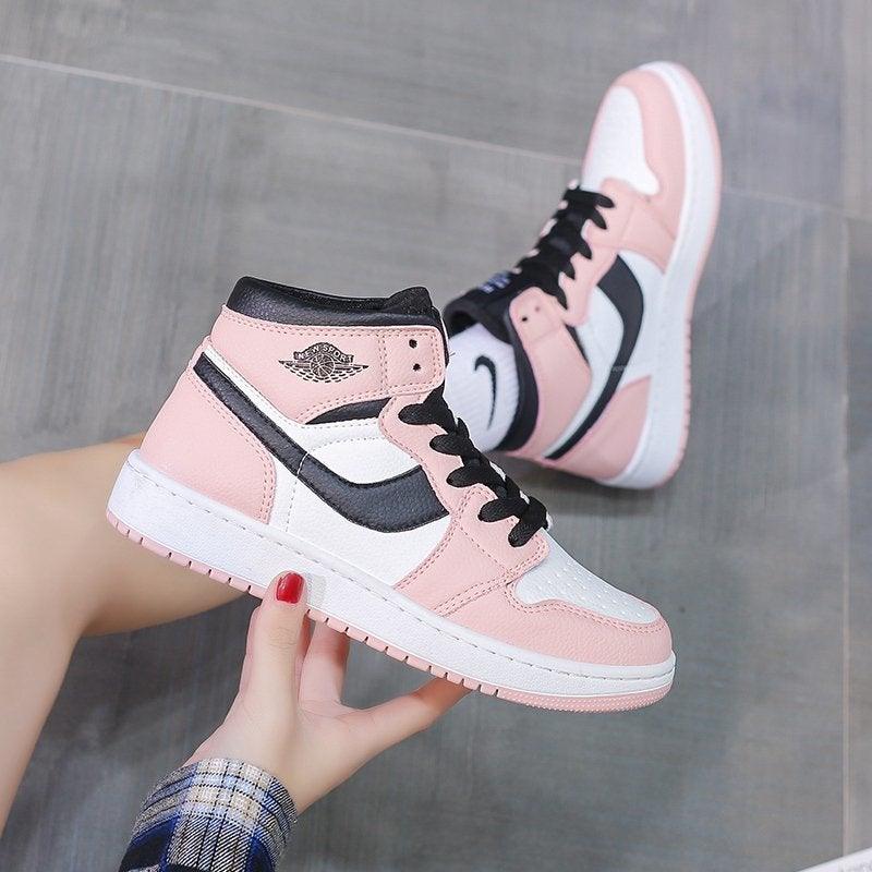 Leather Sports Running Shoes Red Breathable Anti Slip Vulcanized High Top Plate Shoes Lace-up Classic Shoes Girls Comfortable Men Casual Flats Sneakers