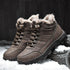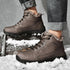 Brown Soft Winter Warm Leather Mens Boots Fur Snow Boots Outdoor Winter Casual Shoes Rubber Ankle Boots Non Slip Fur Lined Boots Leather Comfortable Mens Mountain Shoes