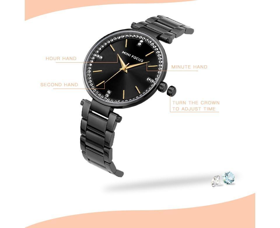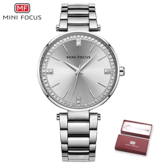 Luxury Crystal Fashion Womens Watch Quartz Analog Waterproof Elegant Stainless Steel Strap Wrist Watch For Women