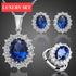 Luxury Elegant Juwelery Set For Ladies IN Blue Crystal Stone Wedding Jewelry Style For Brides Silver Color Necklace Set For Women