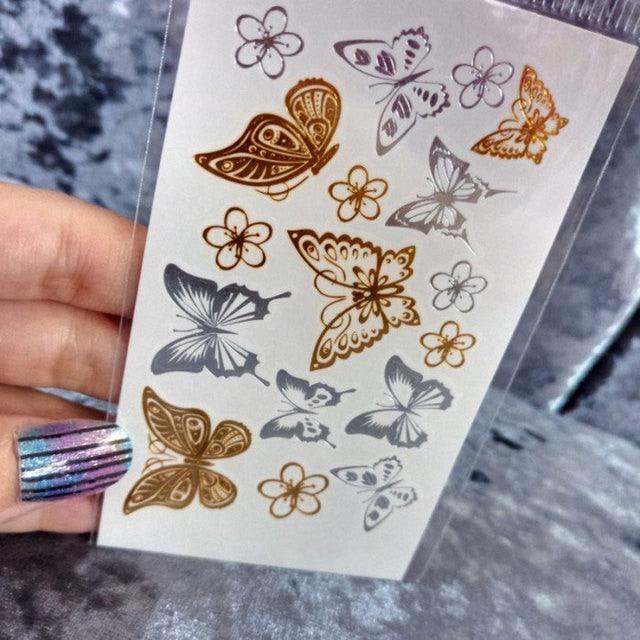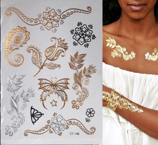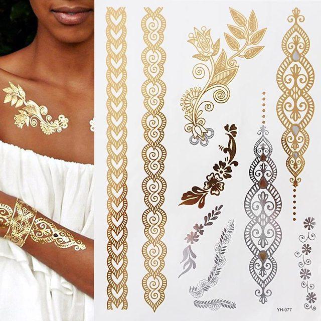 Luxury Flash Metallic Waterproof Temporary Tattoo Gold Silver Flower Tattoo Sticker Long Lasting Gold Design For Womens
