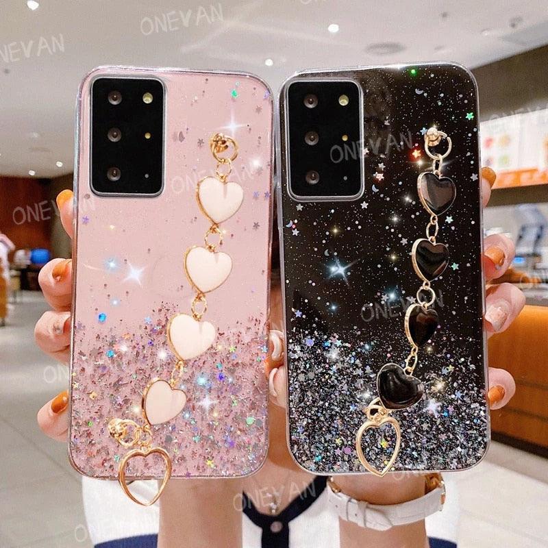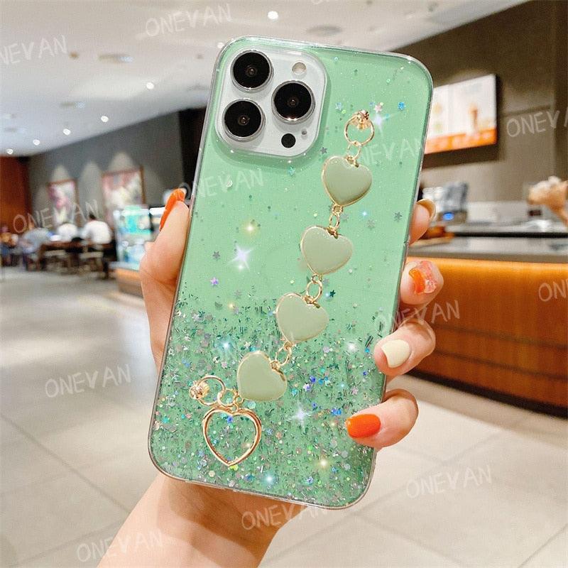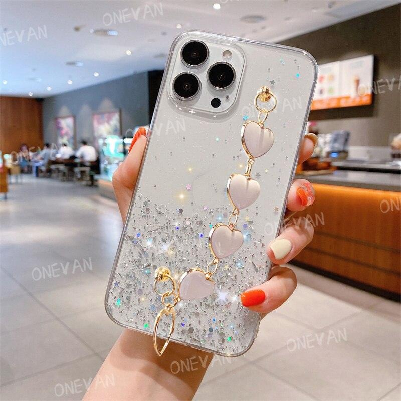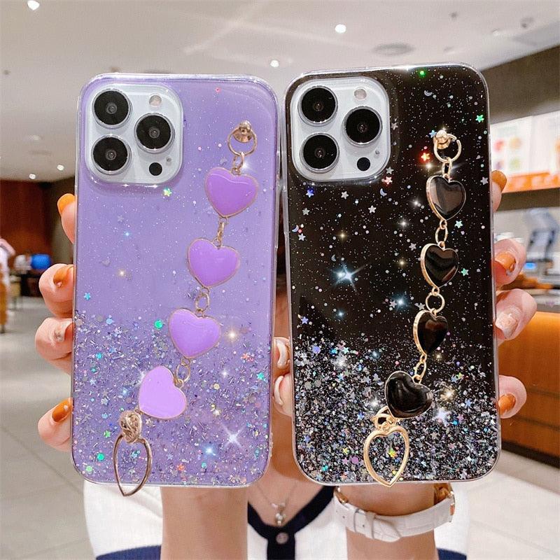 • HEART BRACELET DESIGN: Beautiful bracelet with phone case, make your phone more beautiful and eye-catching, and convenient for daily carrying.