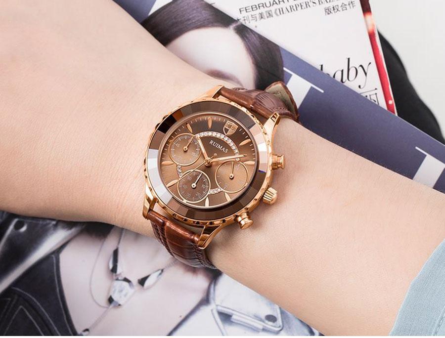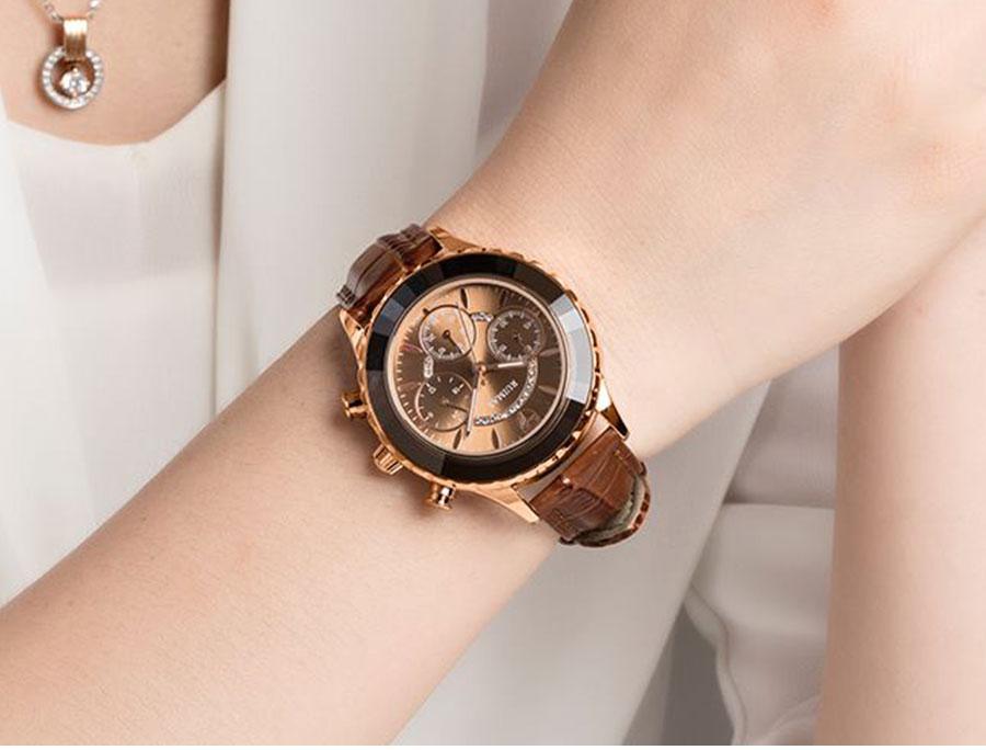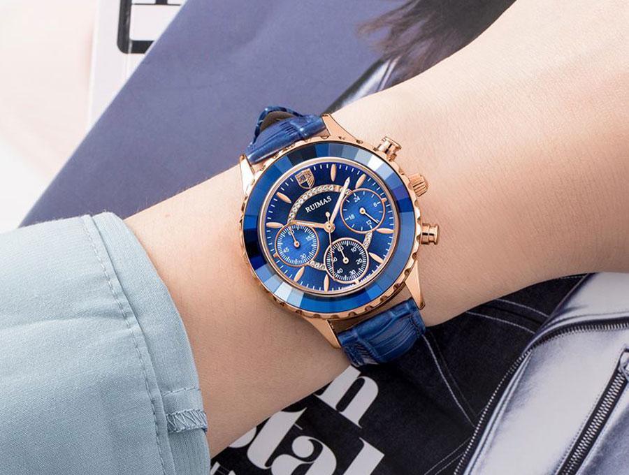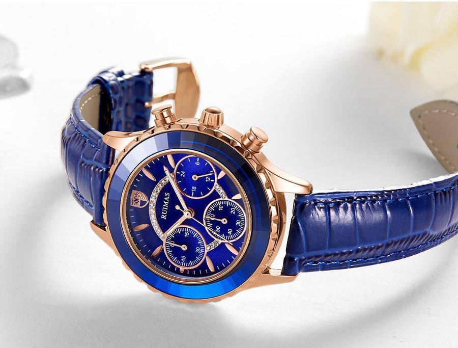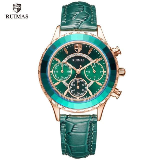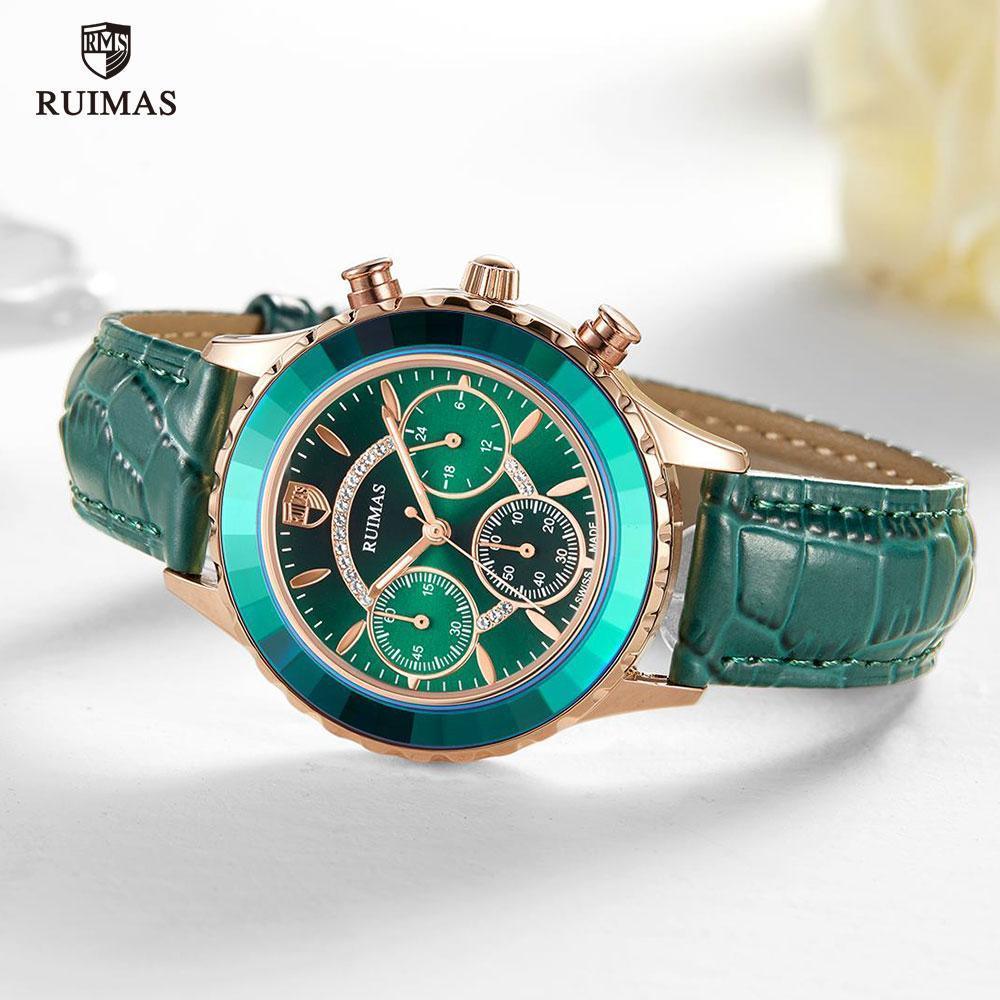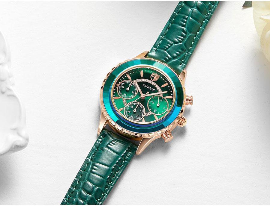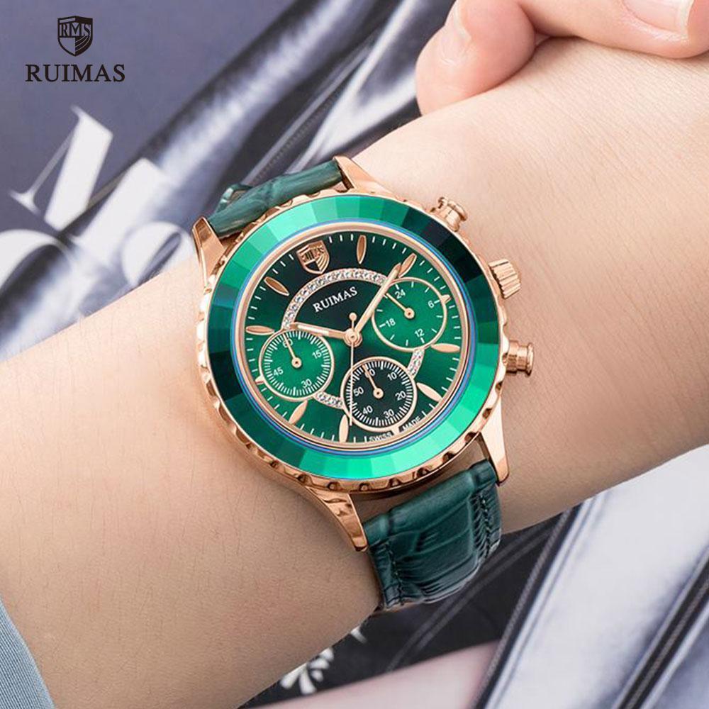 Luxury Green Business Women Watches Quartz Fashion Leather Strap Waterproof Multifunctional Wristwatch For Women