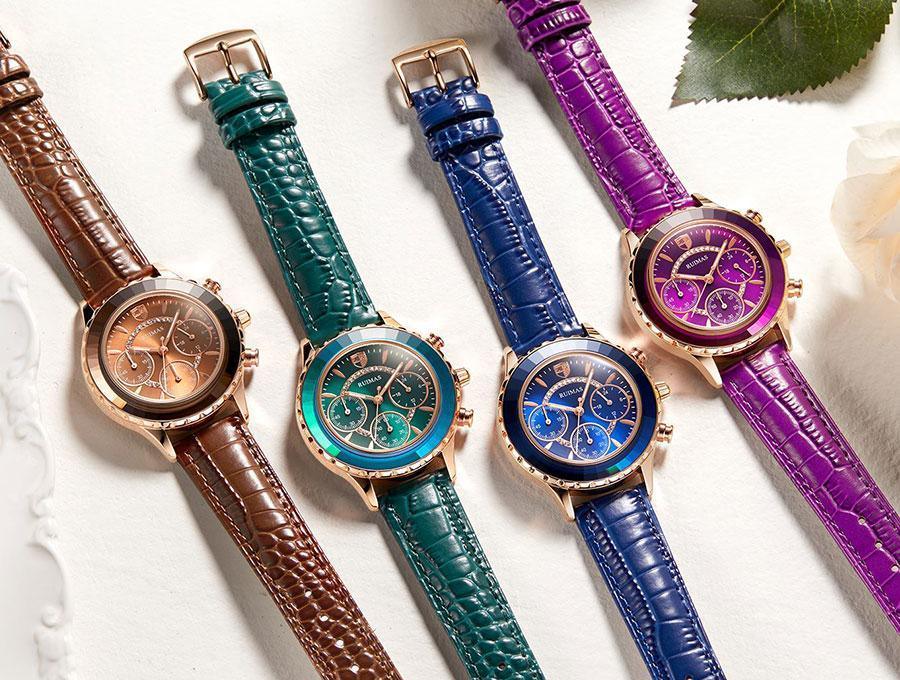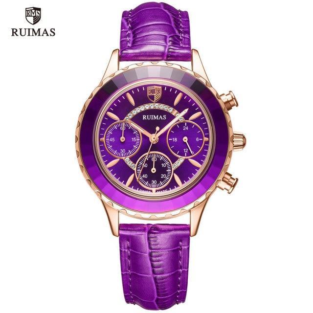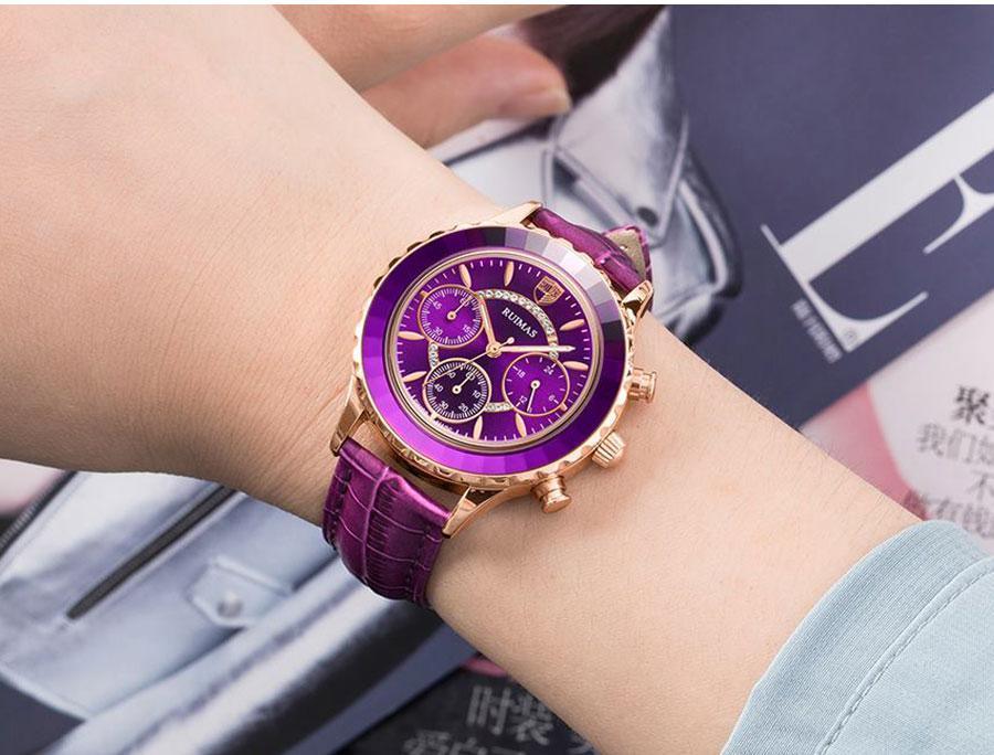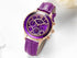 • DESIGN: 39mm round case with purple crystal accented dial, rose gold pointer and hour markers
