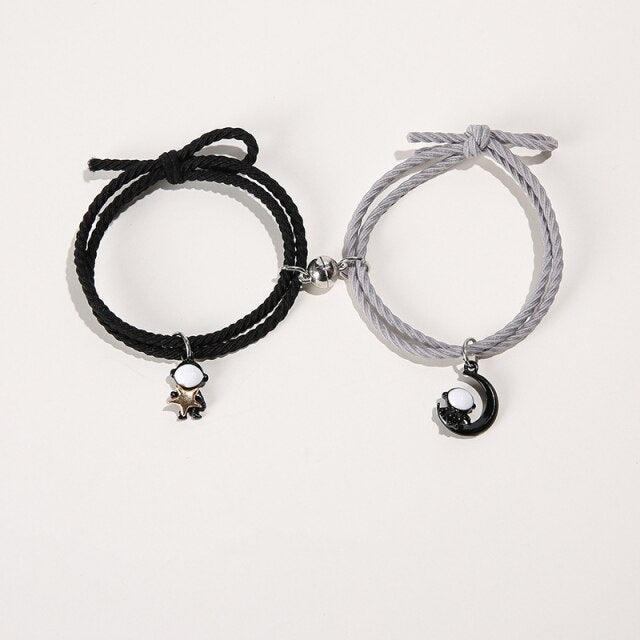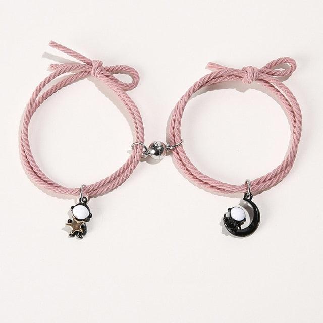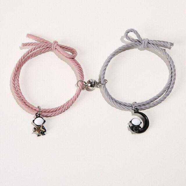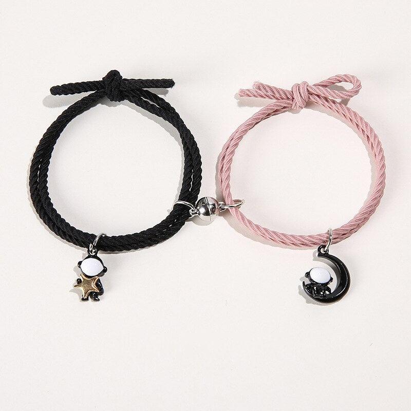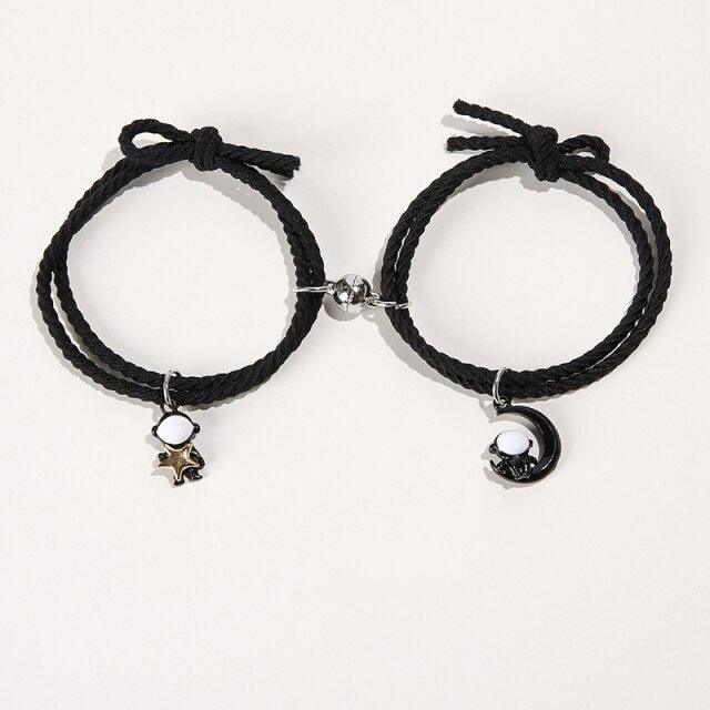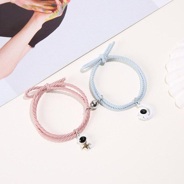 Luxury Magnetic Couple Bracelets With Moon Robots Pendant Cute Mutually Attractive Friendship Rope Bracelet Magnetic Couples Bracelets Mutual Attraction Relationship Matching Friendship His Hers Rope Bracelet Bff Best Friend Gift