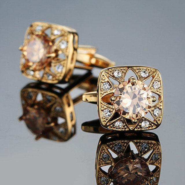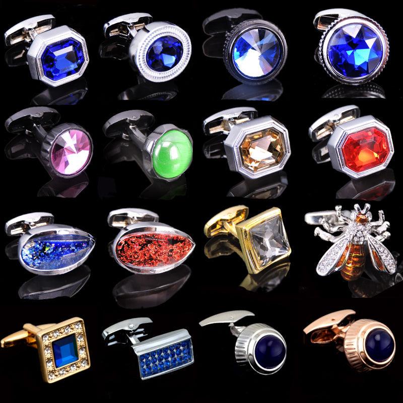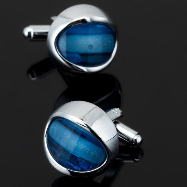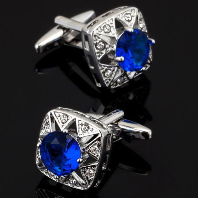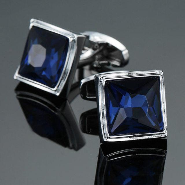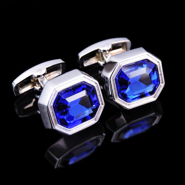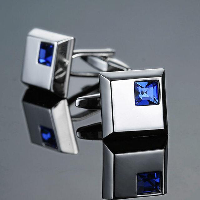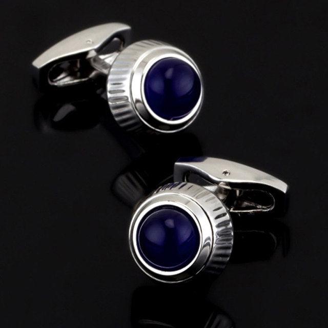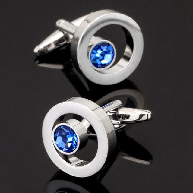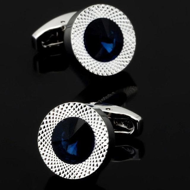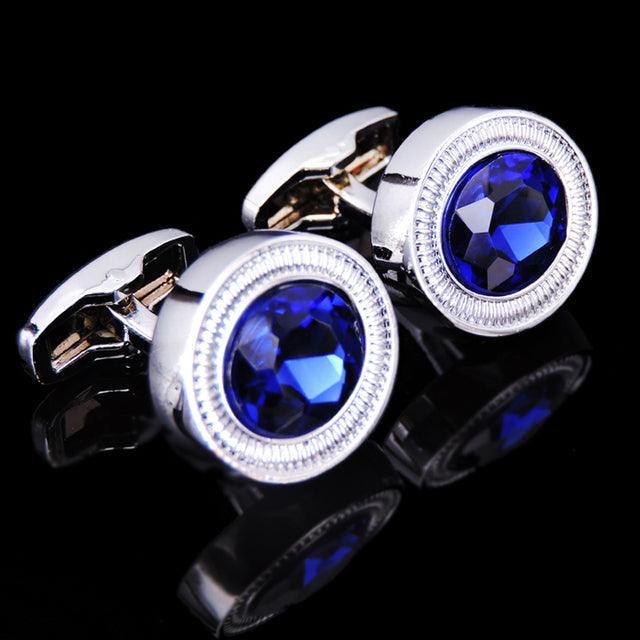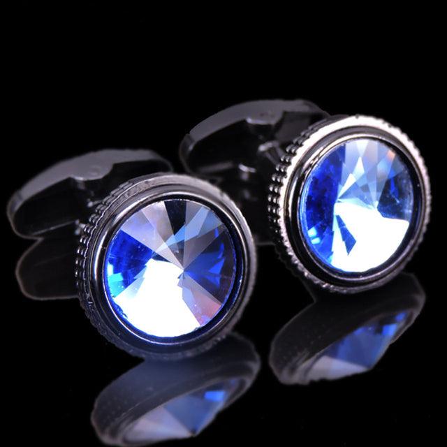 Luxury Men Shirt Cufflinks New Fashion Blue Crystal Cufflinks Gorgeous Elegant Round Cufflinks Wedding Gifts Party Cufflinks