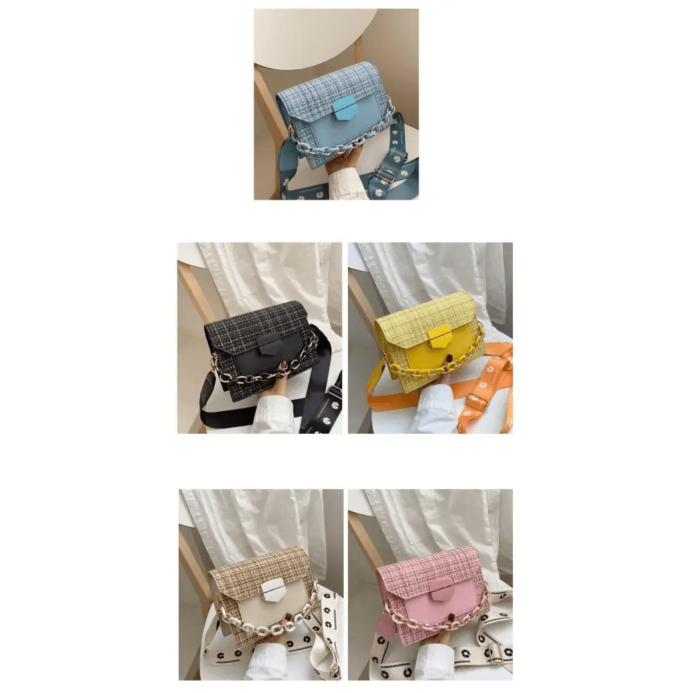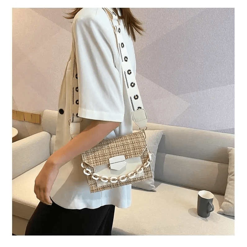 Luxury Wide Strap Shoulder Bags for Women And Girls Designer Lady Handbags and Purses Fashionable Chain Messenger Crossbody Bags