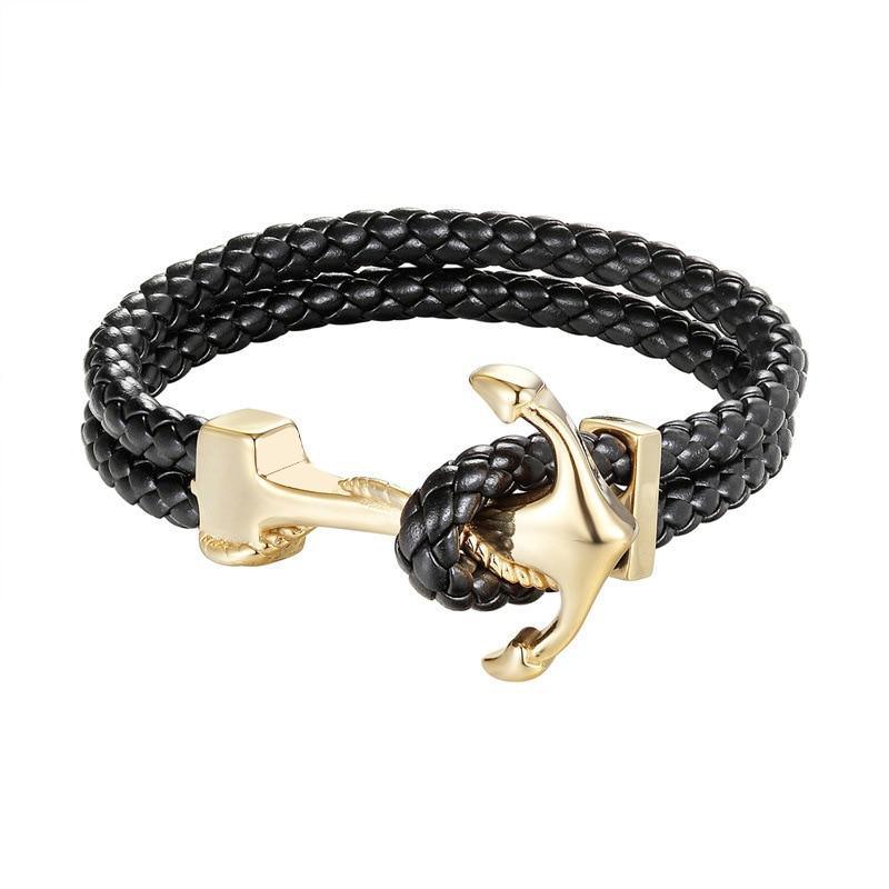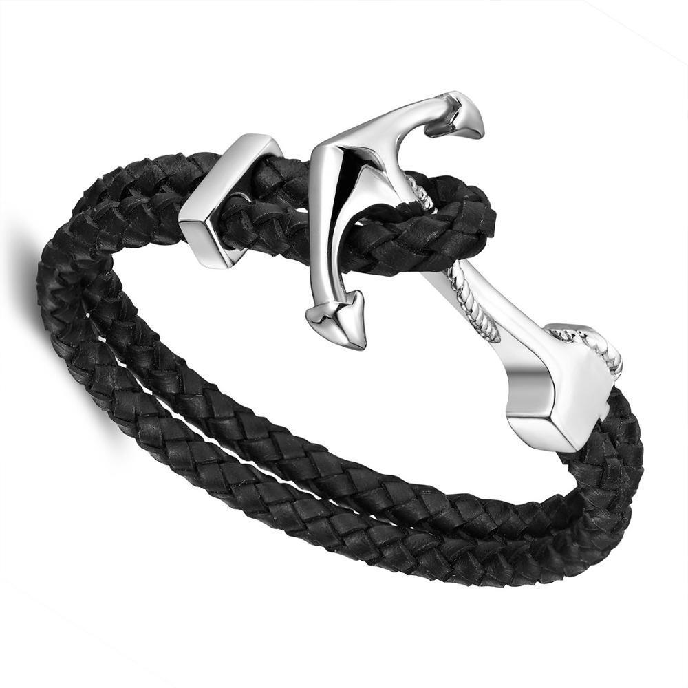 Men Luxury Titanium Steel Vintage Genuine Leather Bracelets Stainless Steel Anchor Armband Fashion Jewelry Bracelet Accessories For Man