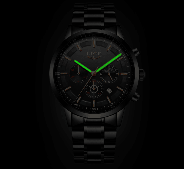 • MULTIFUNCTION - Round watch black dial with multi-function sub-dials, chronograph , moon phase,luminous pointer,30M waterproof and day display watch, a great gift for family or friends.