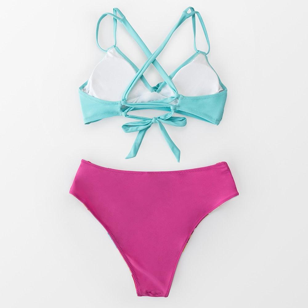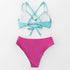 Beautiful Pink Blue Mid Waist Bikini Sets Women Light Aqua And Leafy Two Pieces Swimsuits New Bathing Suit Fashion Women's Swimsuit High Cut Bikini Push Up Charming Beach Two Piece Bathing Suits