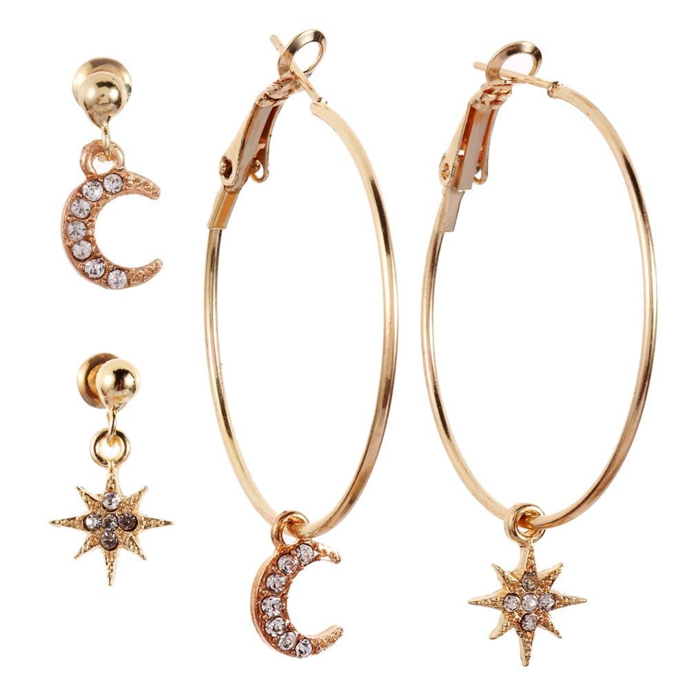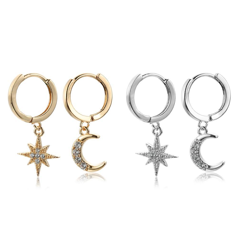 Moon Star Stylish Women's Earrings Epic Asymmetric Round Hoop Dangle Earrings Luxury Gold Sliver Color