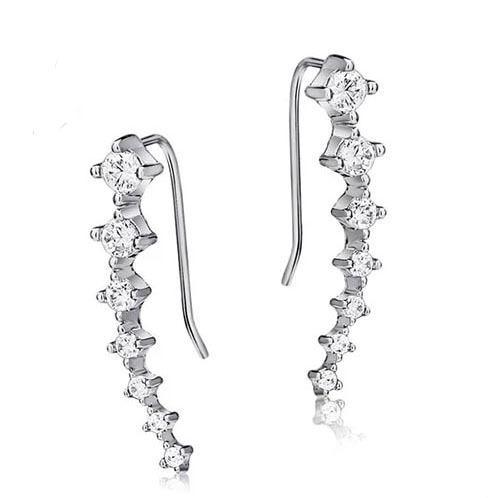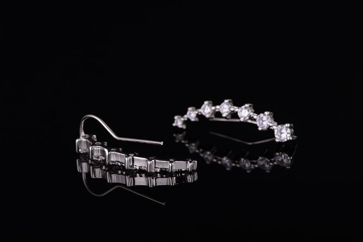 • STYLE- Platinum plated sterling silver earrings featuring graduated stones in prong settings on inner and outer curves