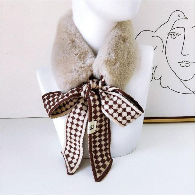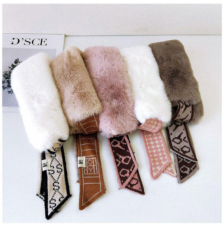 New Autumn Winter Fashion Soft Faux Fur Crochet Knitted Neck Warmer Elastic Neck Gaiter Head Wrap Lightweight Scarf Collar Neck Elegant Warmer Scarves for Women