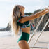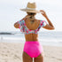 • UNIQUE DESIGN- Flutter ruffled Flounce sleeve two piece swimsuit, have a adjustable Design in top front cute and floating. Deep V neck, soft removable pads,wire free, round back cut bikini top, give you good support and flatter shape.